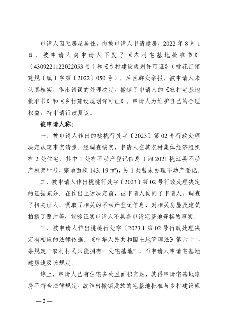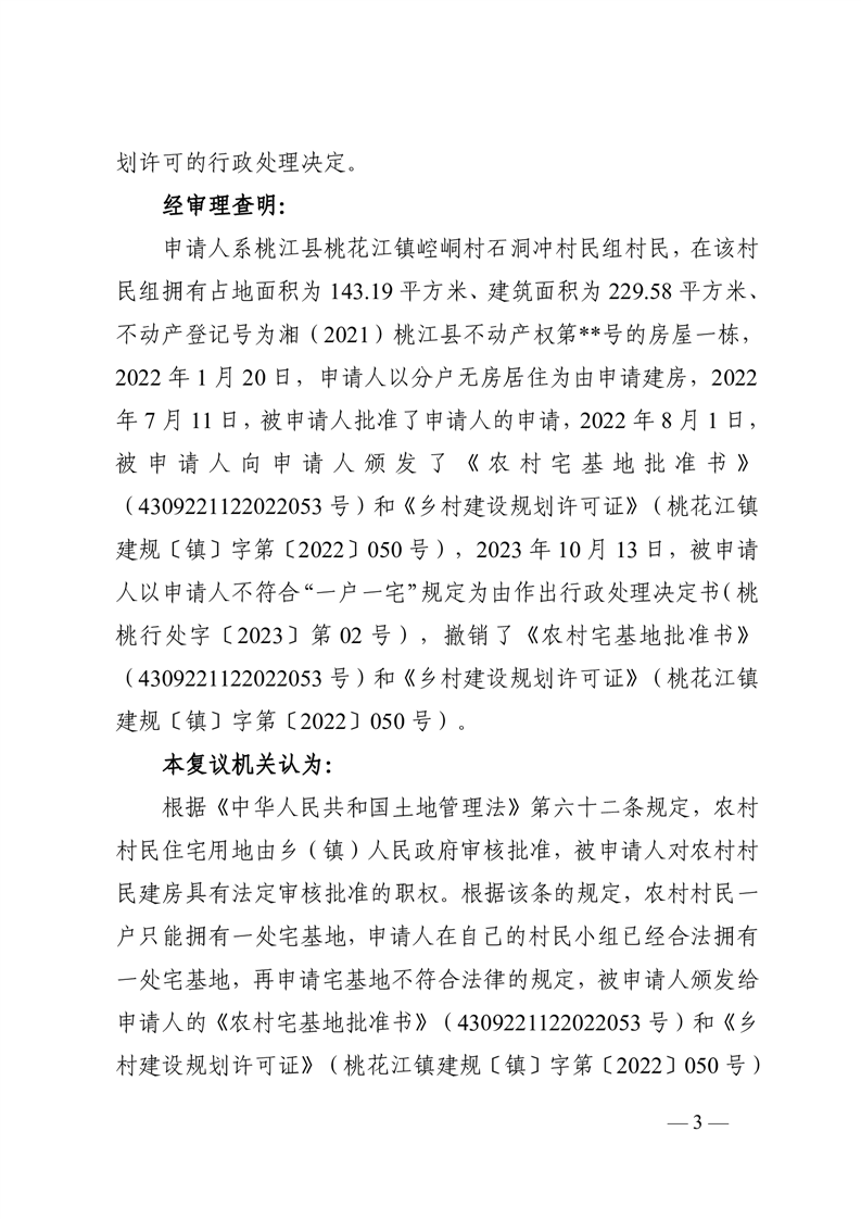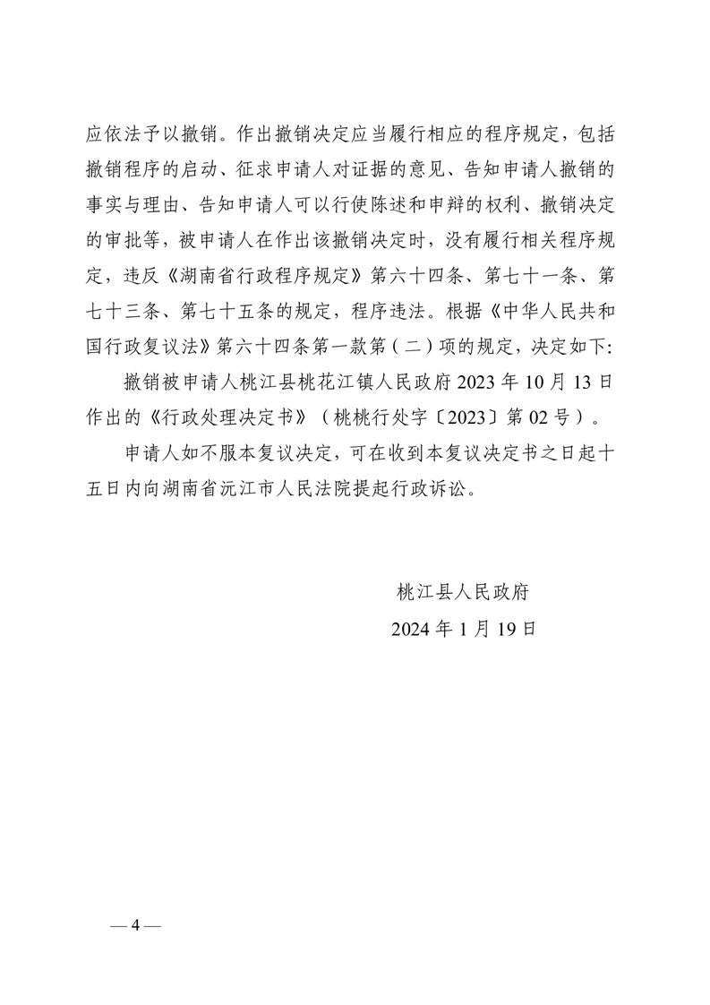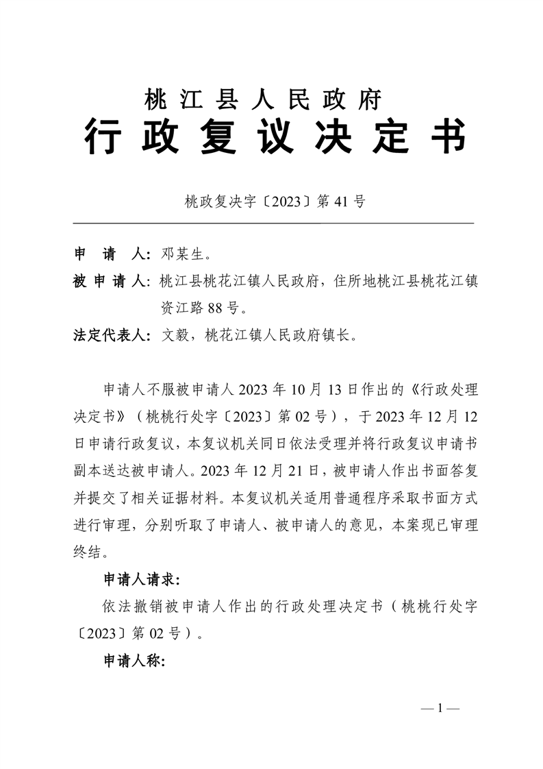 行 政 复 议 决 定 书 桃政复决字〔2023〕第41号