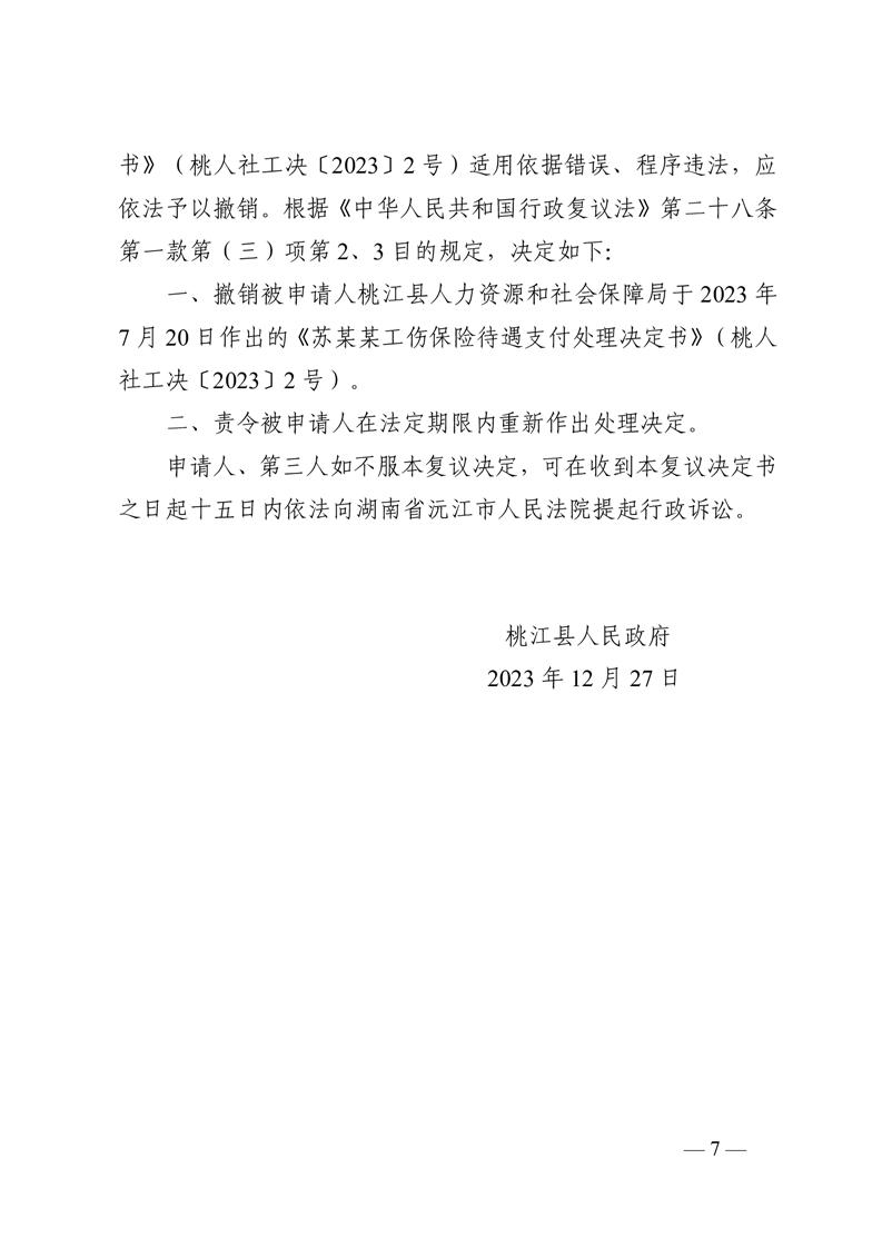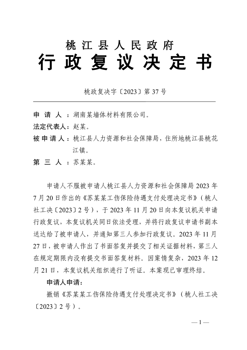 行 政 复 议 决 定 书 桃政复决字〔2023〕第37号