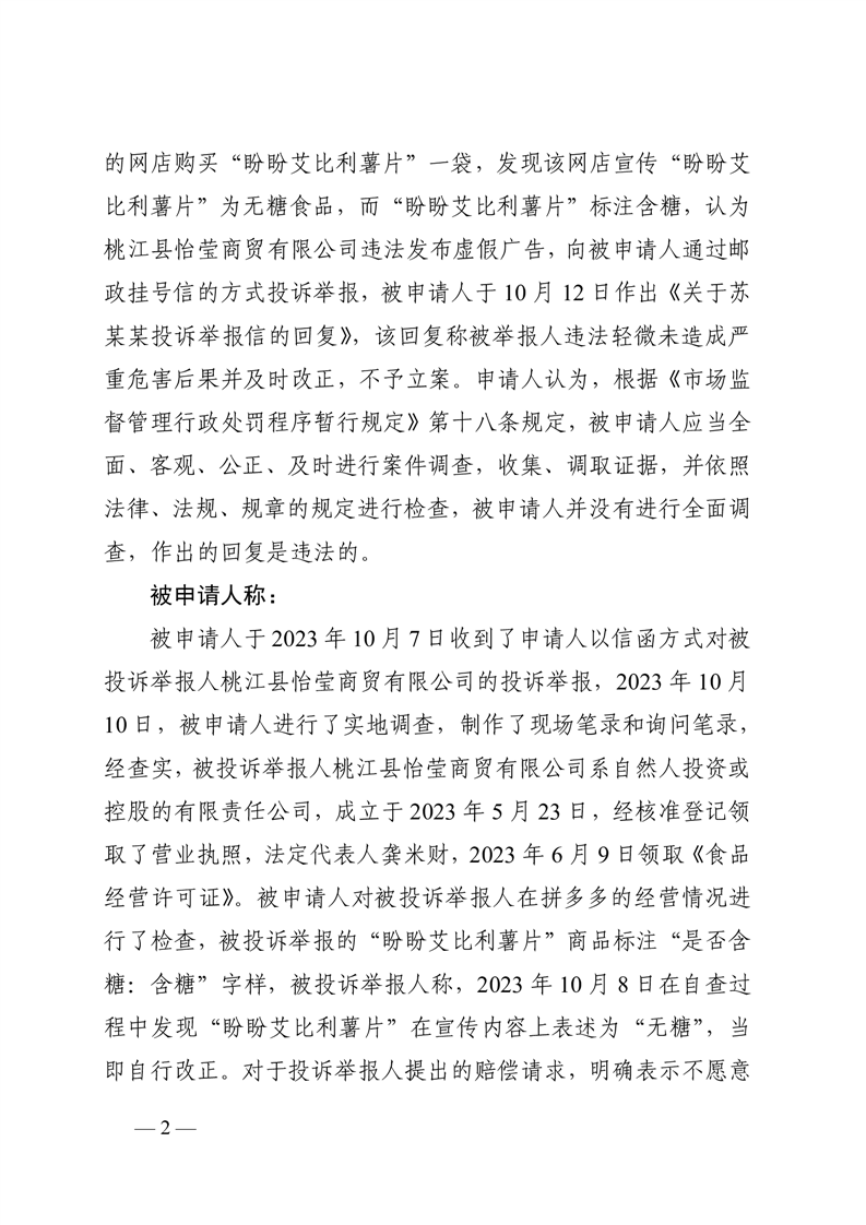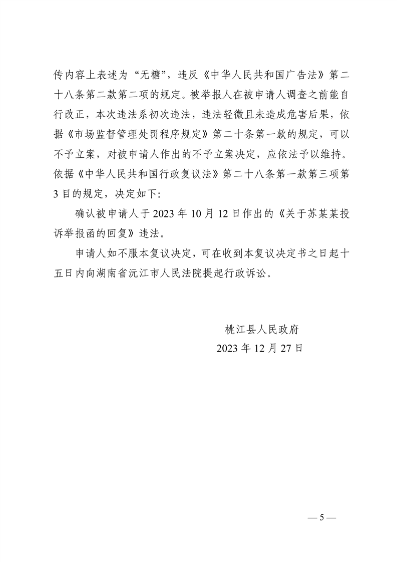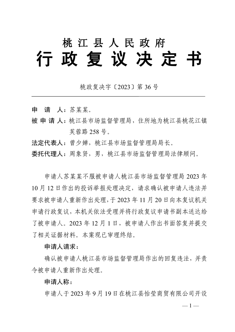 行 政 复 议 决 定 书 桃政复决字〔2023〕第36号