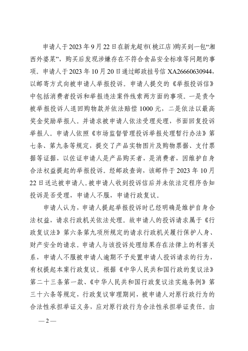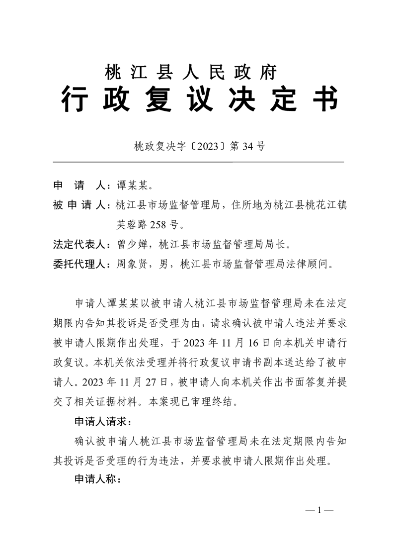 行 政 复 议 决 定 书 桃政复决字〔2023〕第34号