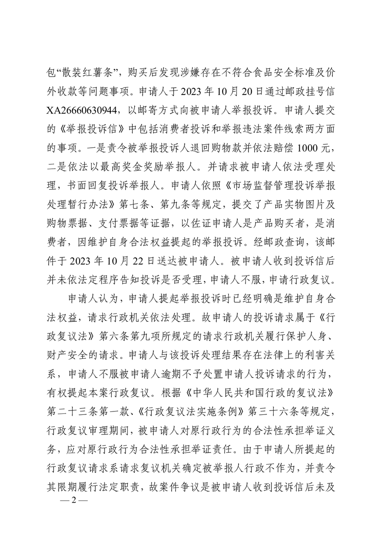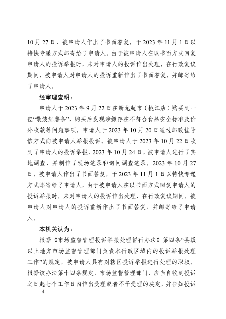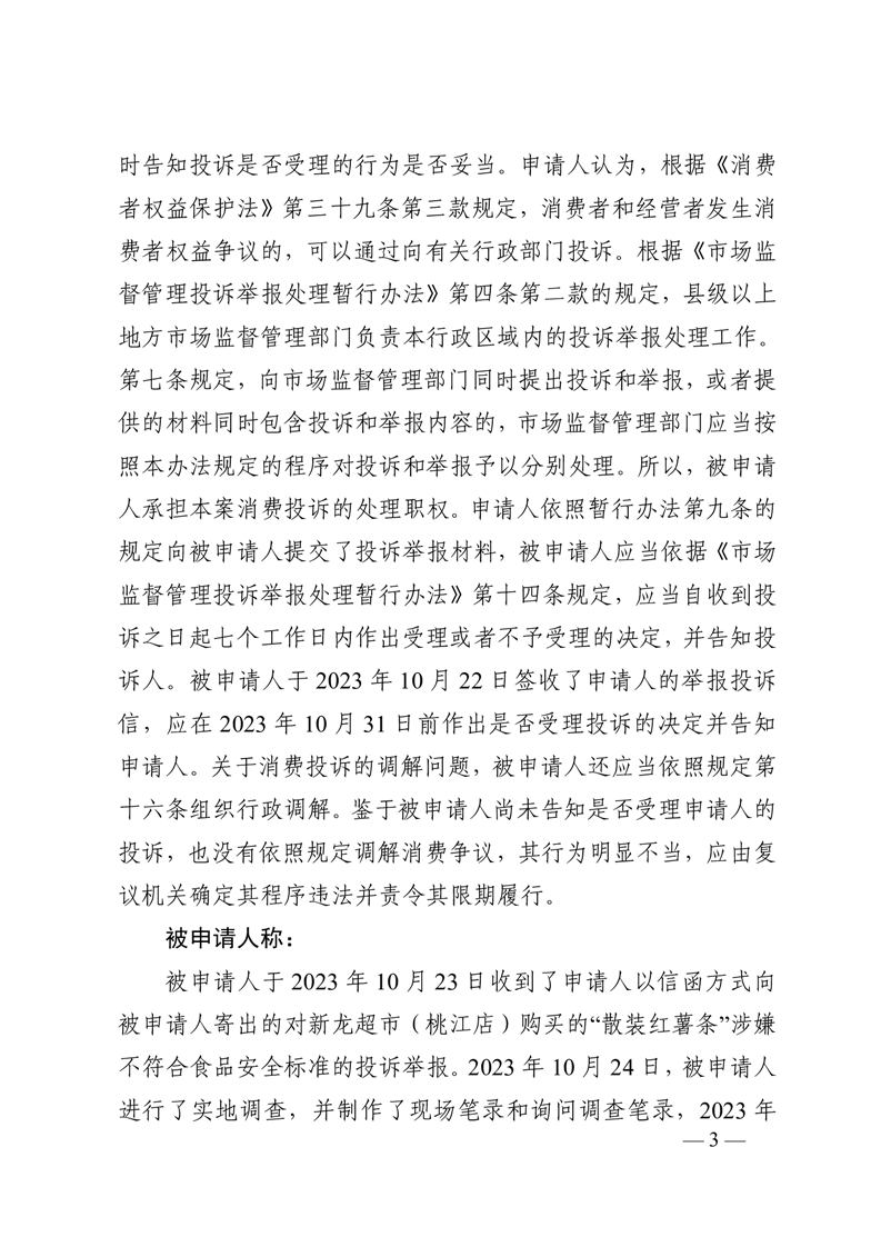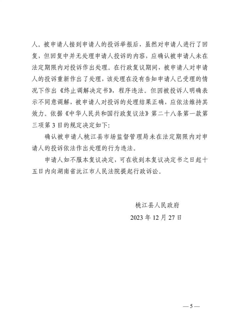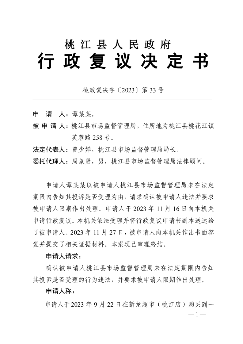 行 政 复 议 决 定 书 桃政复决字〔2023〕第33号
