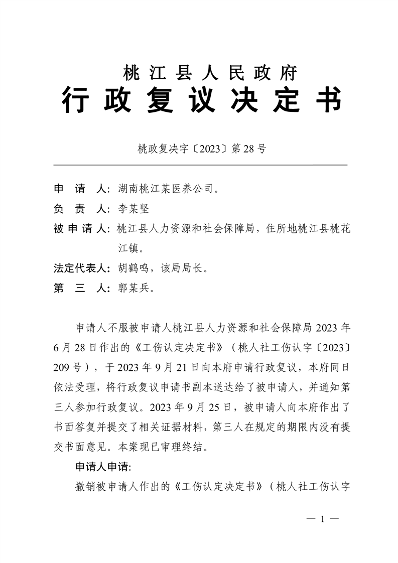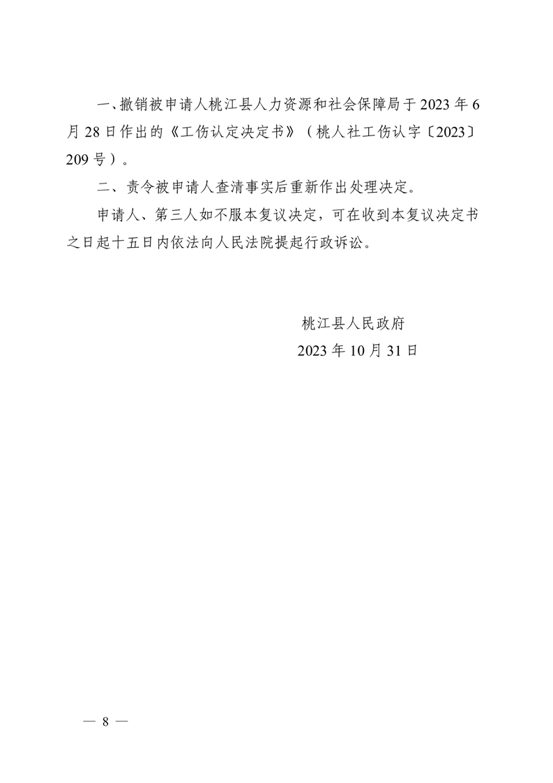 行 政 复 议 决 定 书 桃政复决字〔2023〕第28号