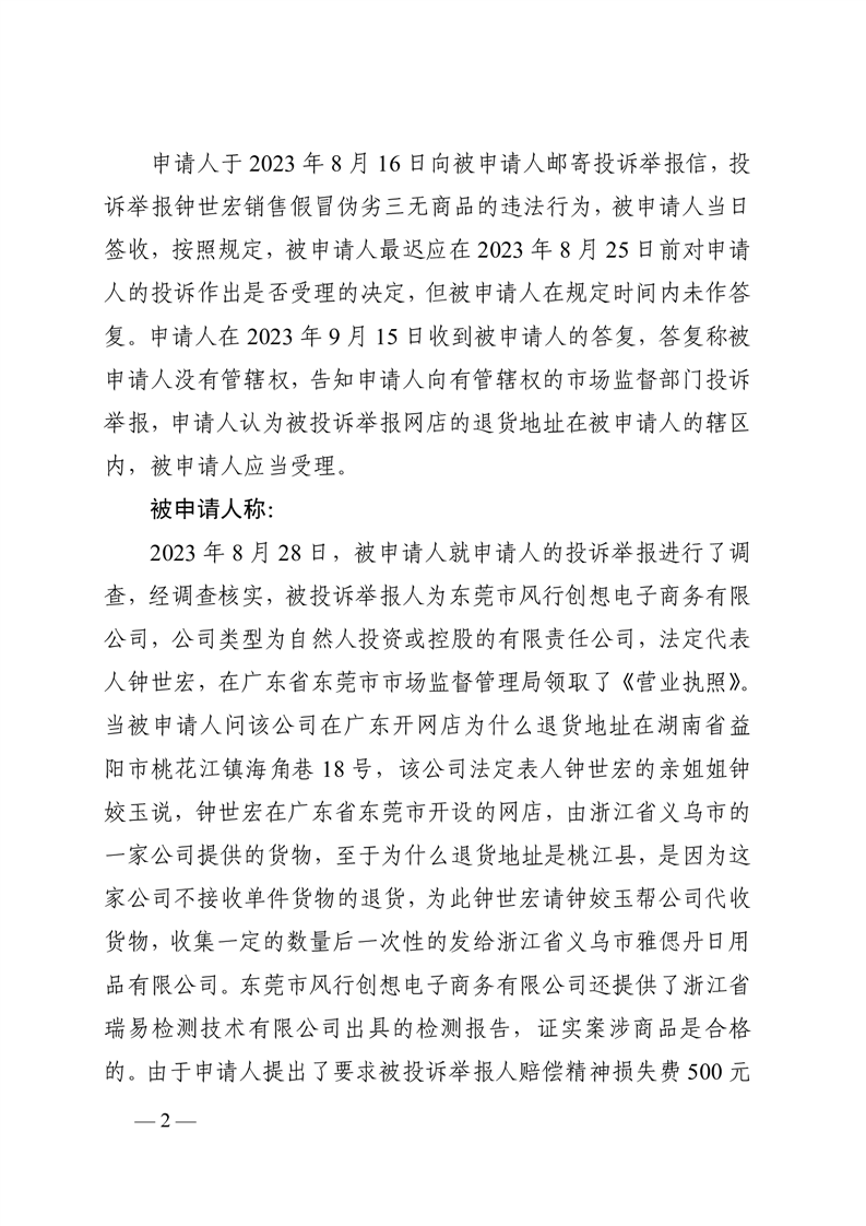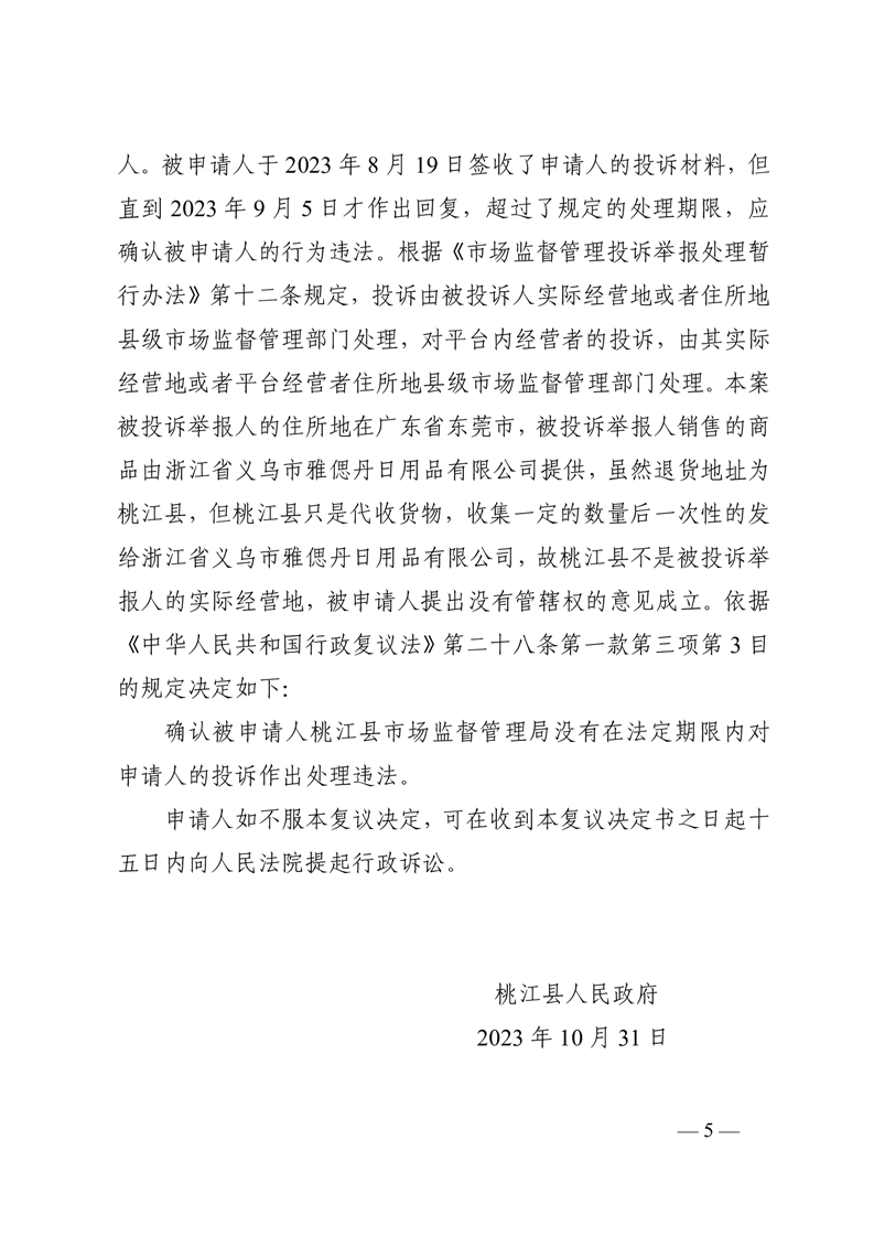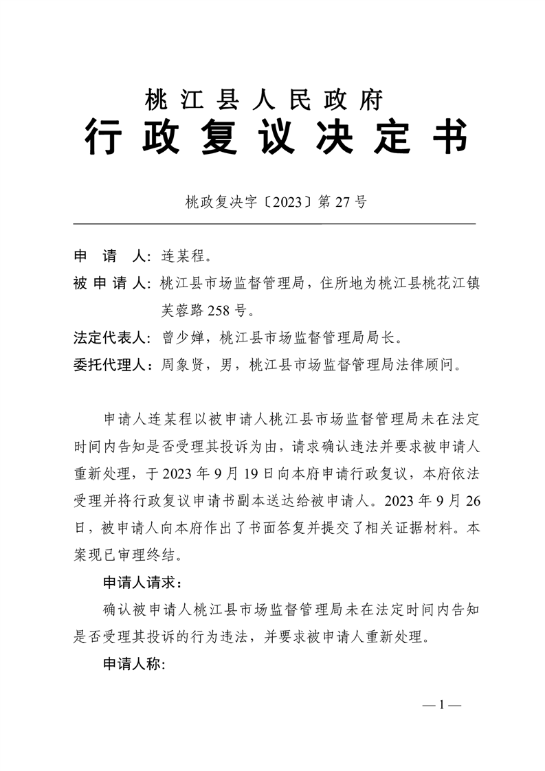 行 政 复 议 决 定 书 桃政复决字〔2023〕第27号