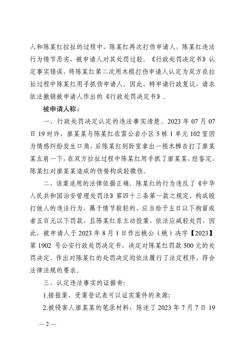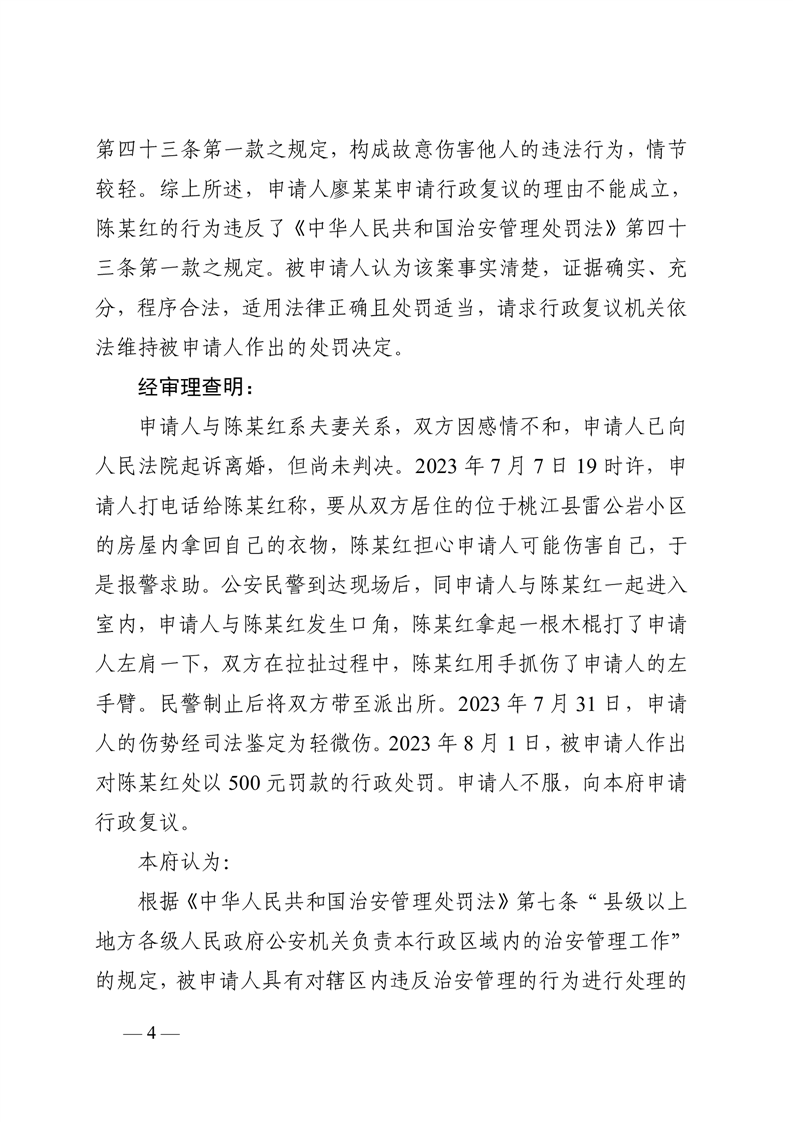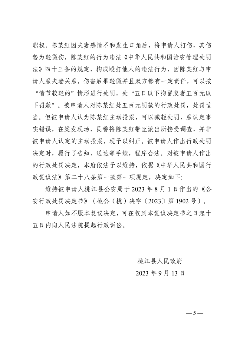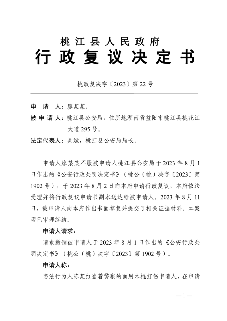 行 政 复 议 决 定 书 桃政复决字〔2023〕第22号