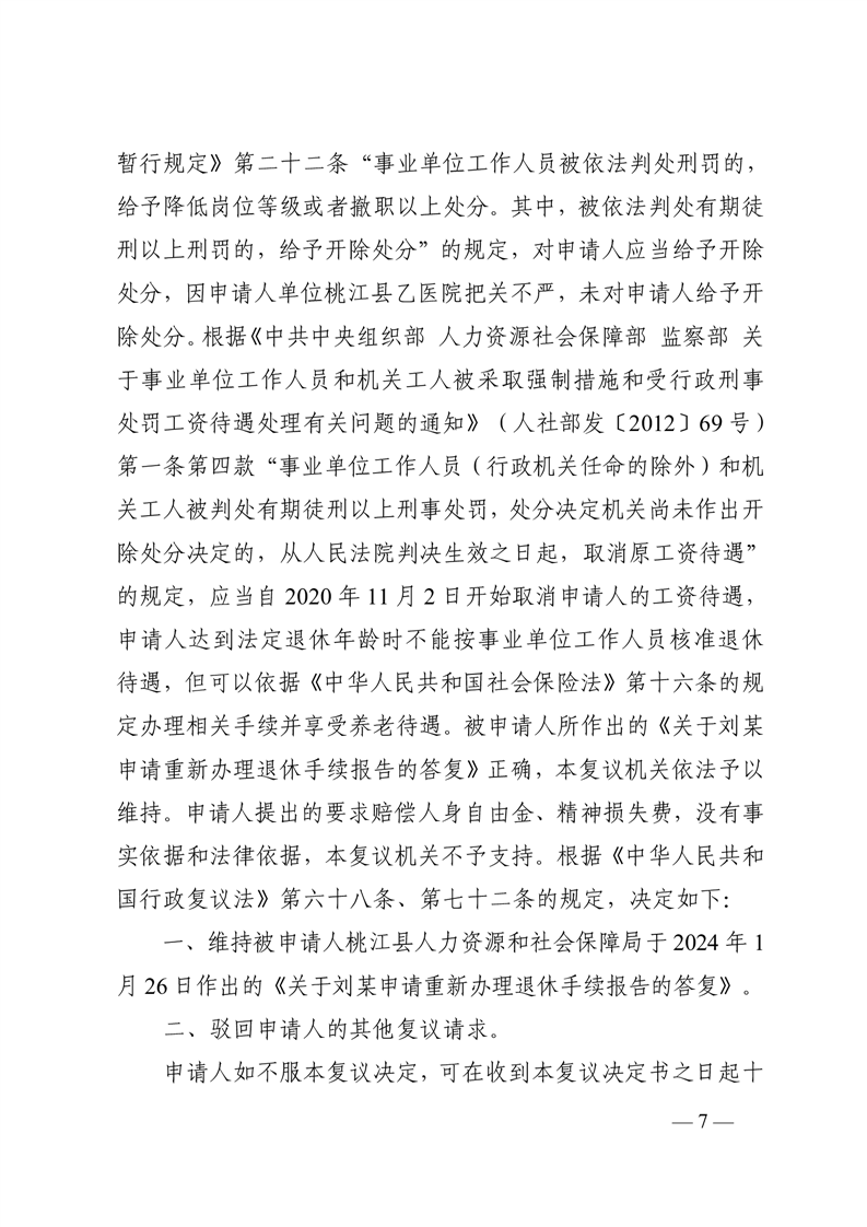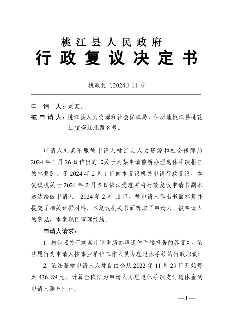行 政 复 议 决 定 书桃政复〔2024〕11号