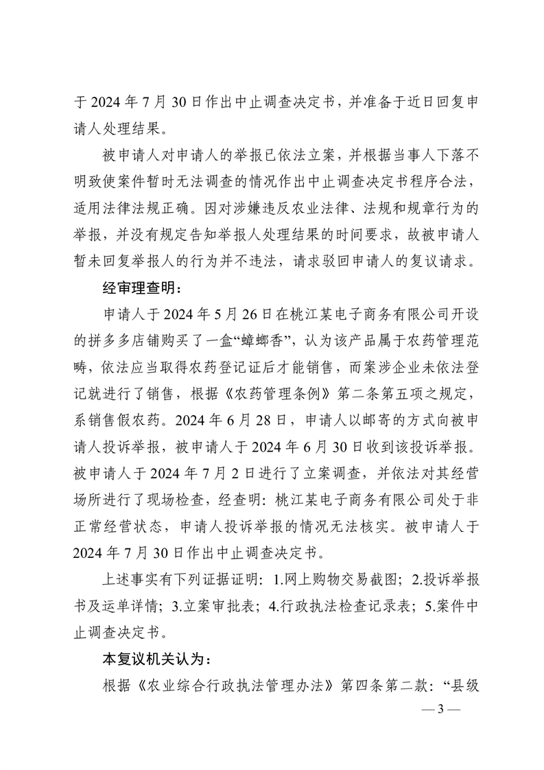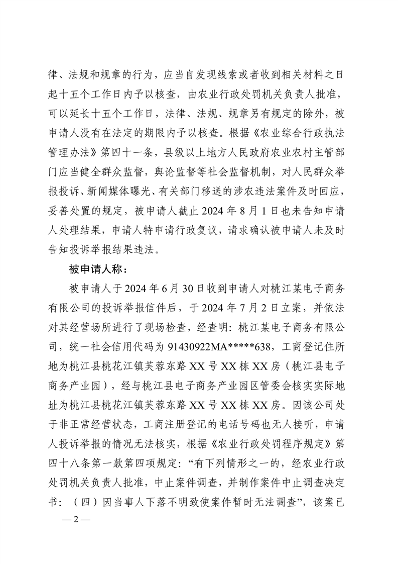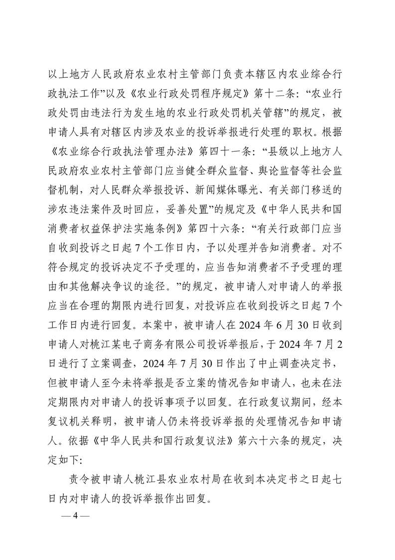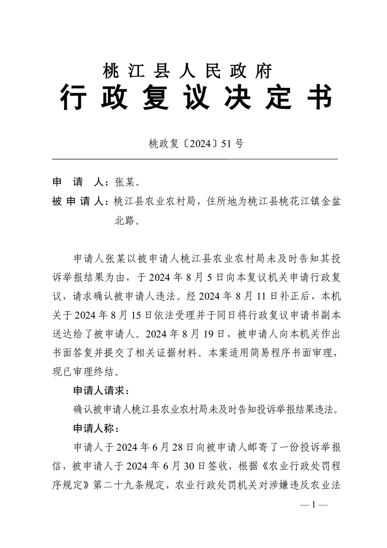 行 政 复 议 决 定 书桃政复〔2024〕51号