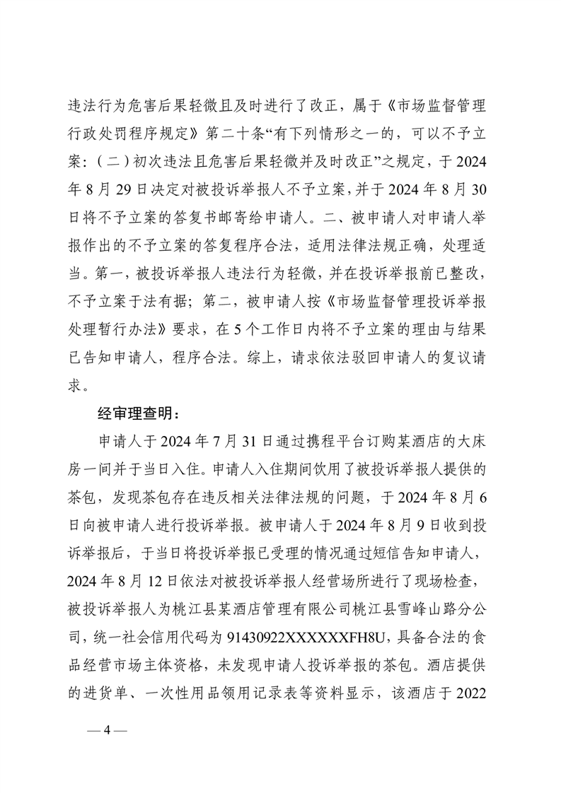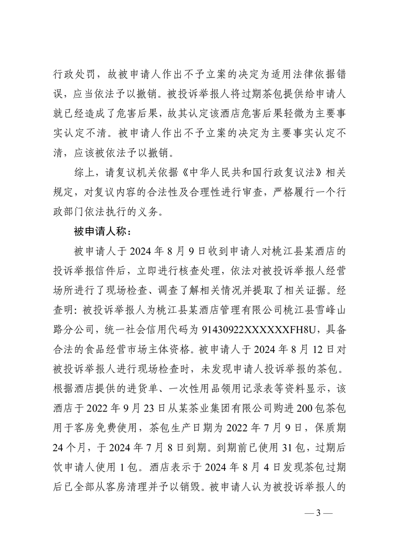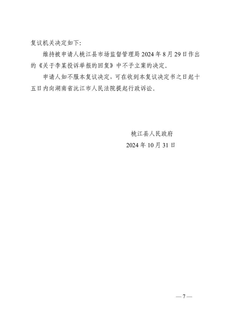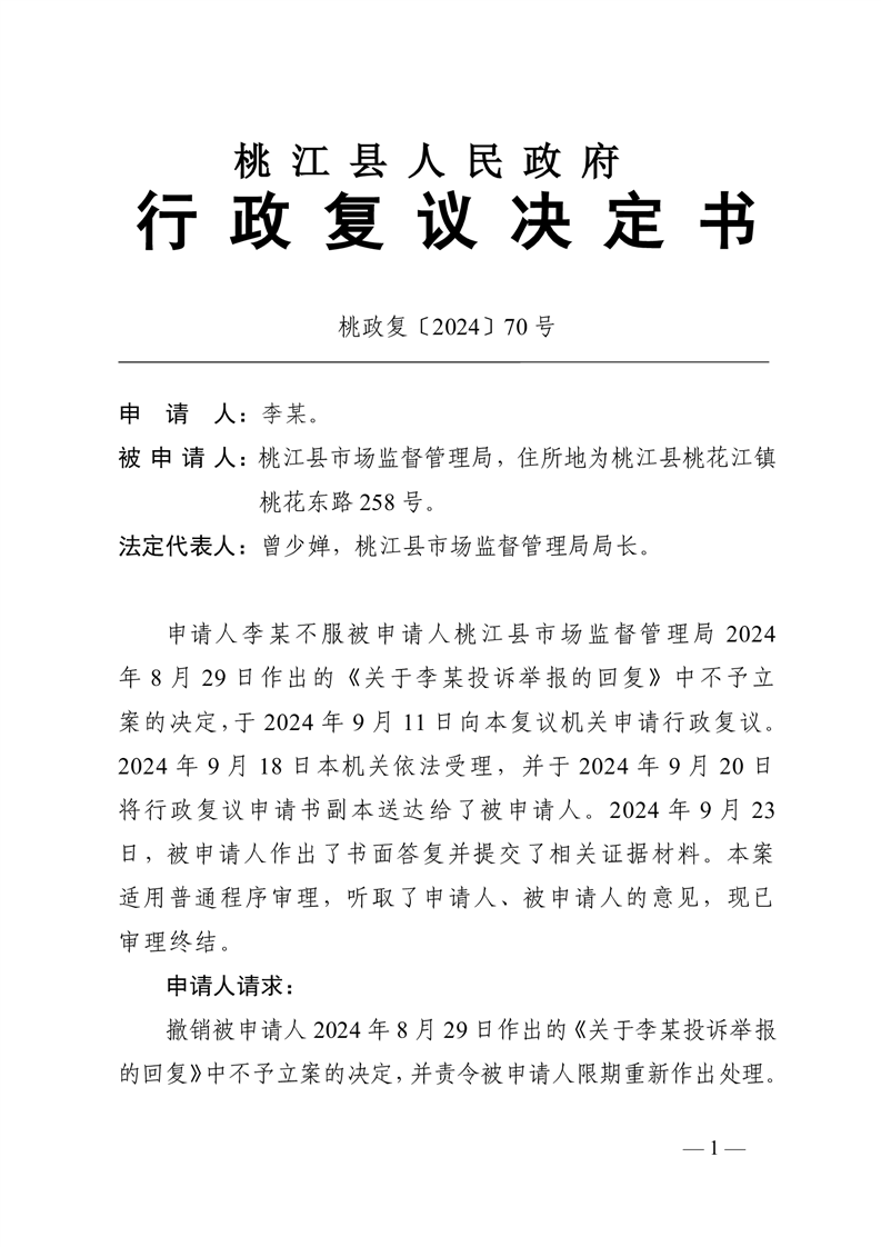 行 政 复 议 决 定 书桃政复〔2024〕70号