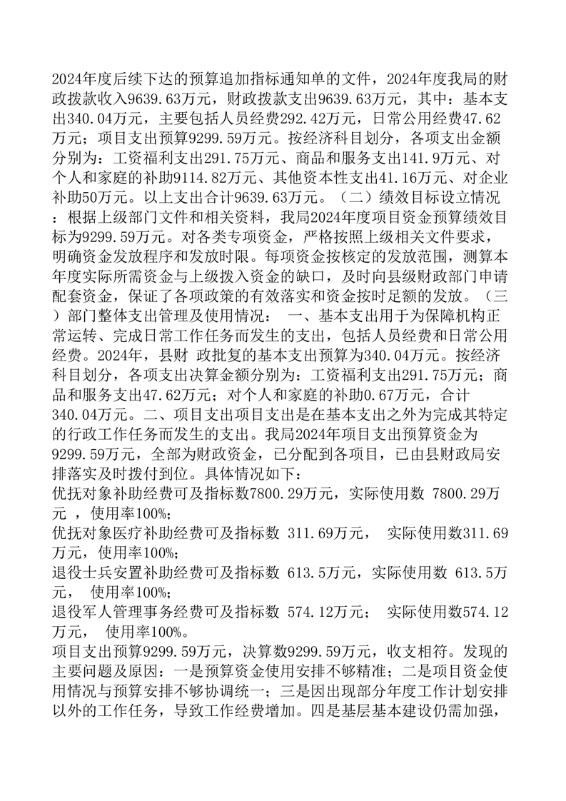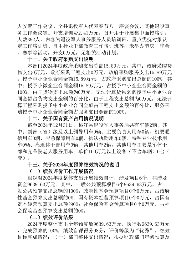 附件1:桃江县退役军人事务局2024年部门整体支出绩效评价格报告.docx