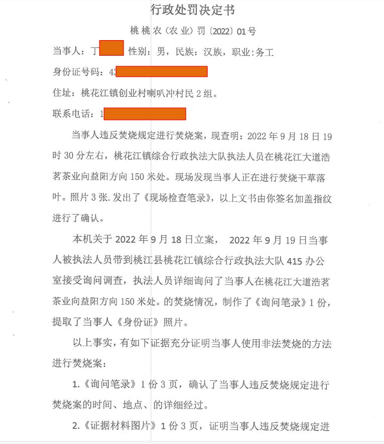 行政处罚决定书 桃桃农(农业)罚〔2022〕01号