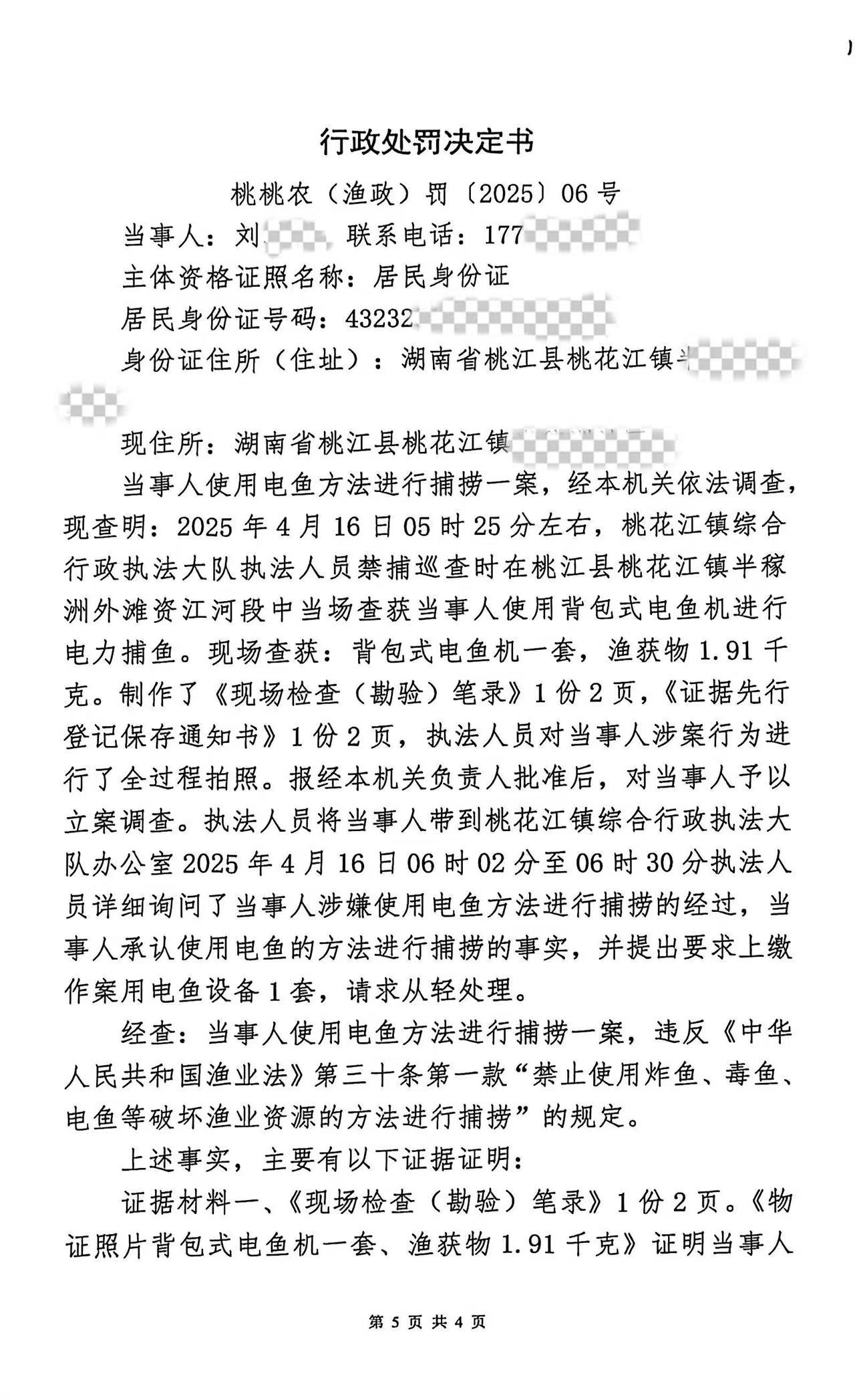行政处罚决定书 桃农农(渔政)罚〔2025〕06号