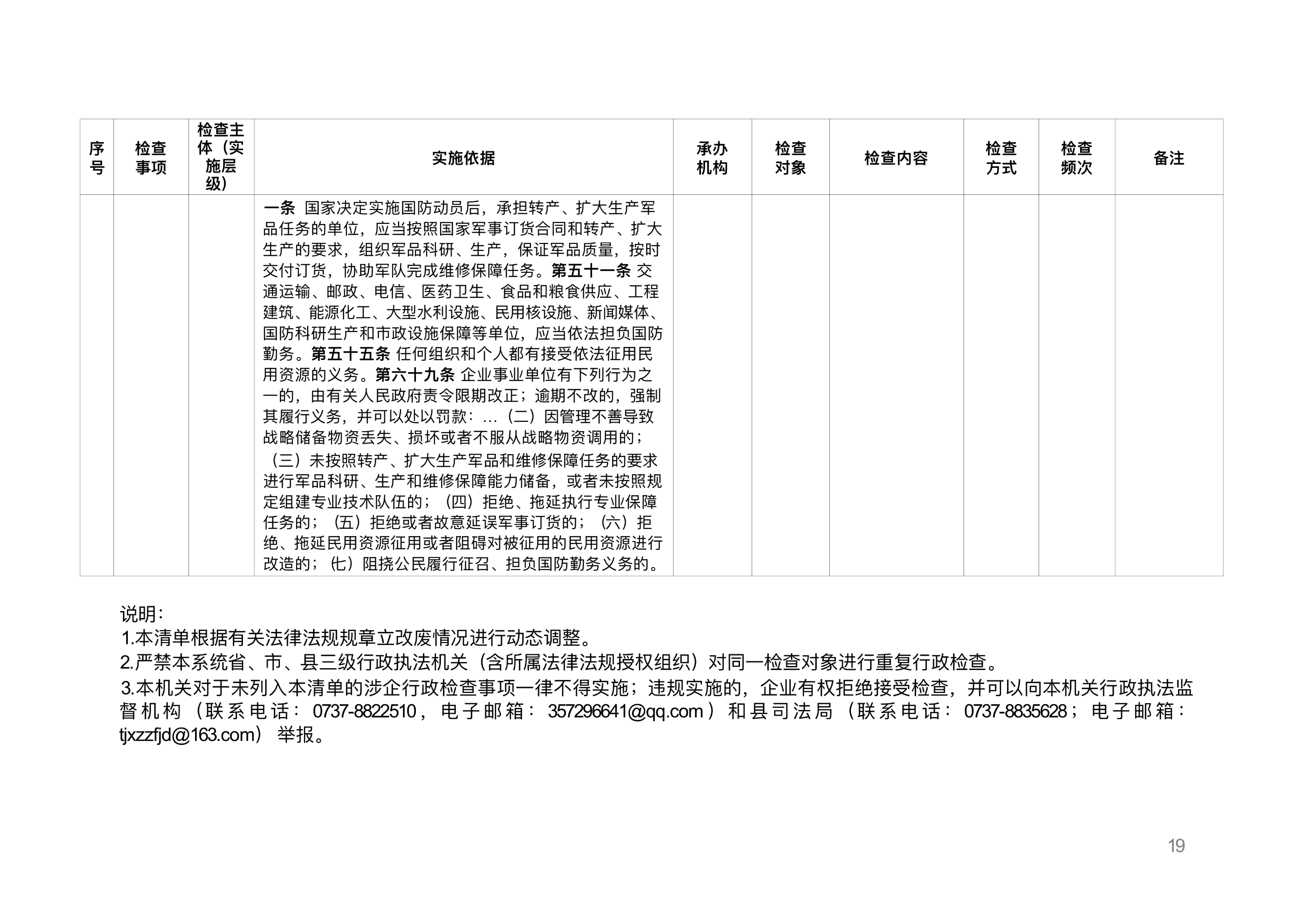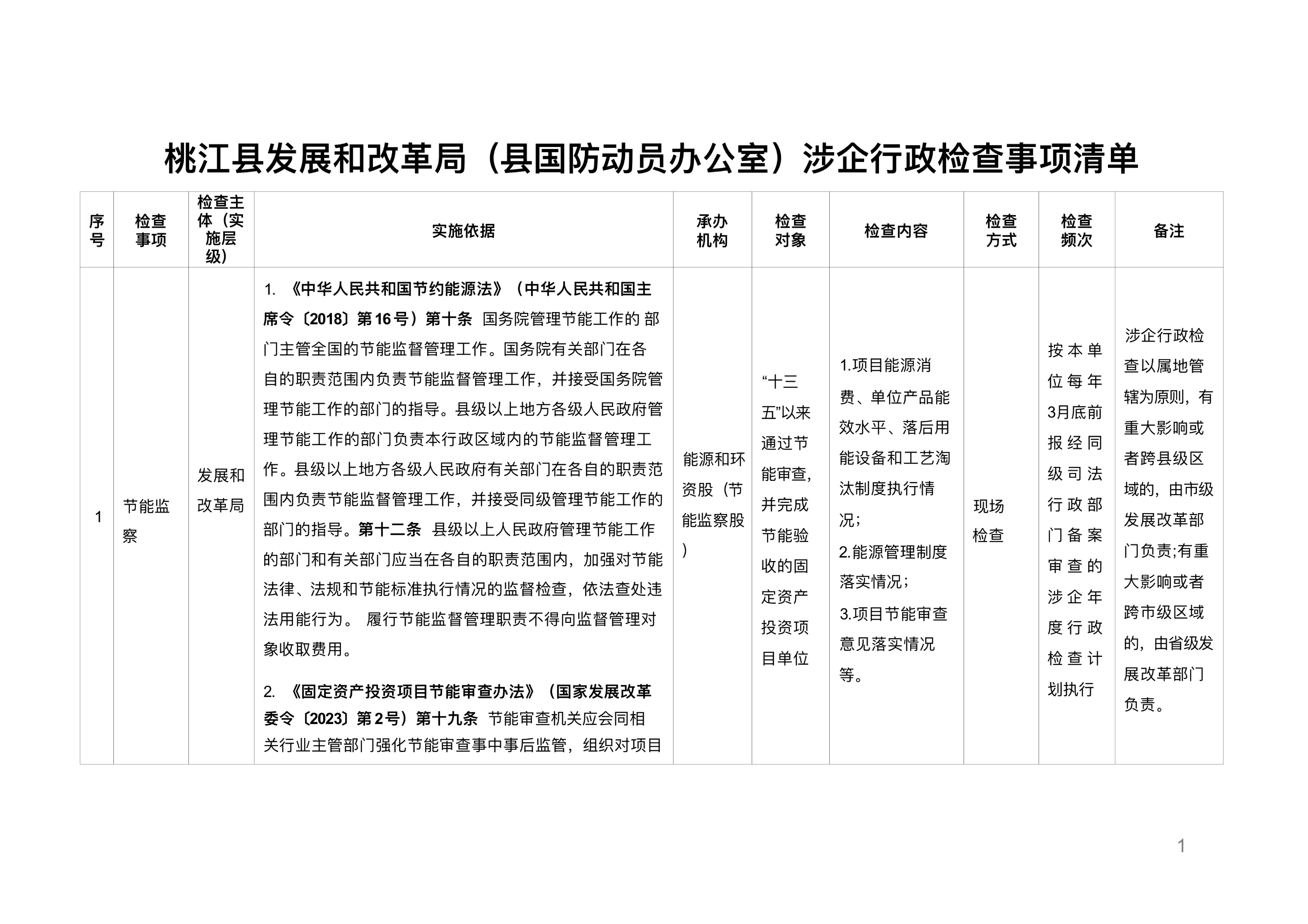 桃江县发展和改革局(县国防动员办公室)涉企行政检查事项清单