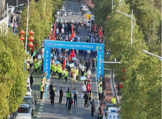 来自四面八方的5千多名志愿者参加桃花江30公里环保毅行