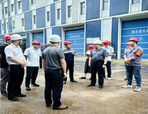 图为书记向荣一行在灰山港镇新奥环保有限公司督导调研现场