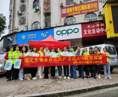 5月22日,桃江县生态环境保护委员会办公室联合益阳市生态环境局桃江分局、桃江县环保志愿者协会的志愿者,在县城及下辖乡镇全面开展第24个“国际生物多样性日”宣传活动。