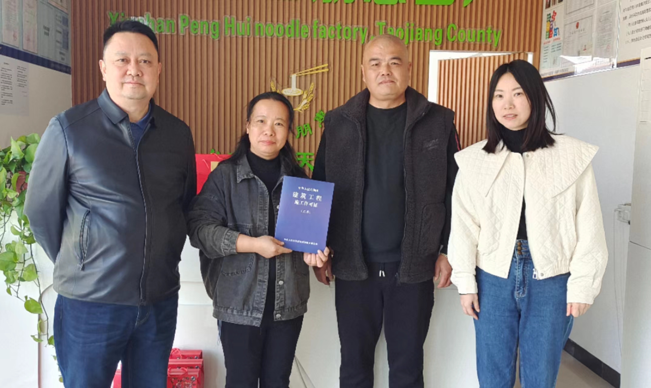 12月18日,湖南省绿寿康食品有限公司符霞辉女士将一面印有“心系企业 真情服务”的锦旗送至县住建局。她说:“感谢住建部门为我们企业解决了十几年来的权证问题,如果不是你们实行容缺办理,简化流程,估计不知道要拖多久,现在仅两天时间就拿到了不动产证。”