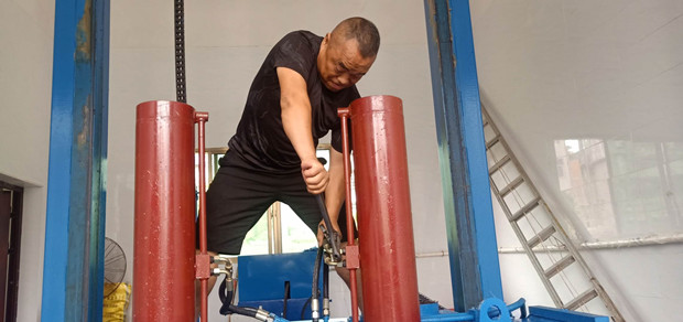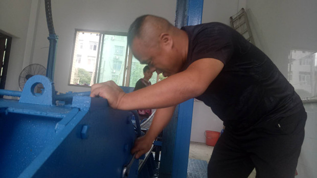唐新民在张家码头垃圾中转站修理设备