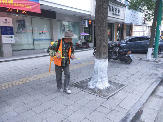 截至目前,工作人员已对城区行道树及公共绿化带内的5万余株树木进行了刷白处理。