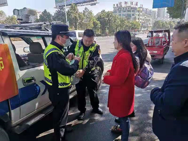 2月19日上午10点,桃江县城管执法局执法人员胡祥辉、张益、熊胜强同往常一样开始城区巡查,途经桃花路与建设路十字路口时,遇到市民胡某某将刚捡到的钱包交给他们,希望城管帮忙联系失主,包内有公交卡一张、银行卡三张、电话卡两张。胡祥辉查看后,通过公交卡上备注的联系方式与失主取得联系,并询问其位置。十分钟后,执法队员找到失主,李某某拿出了身份证证明自己的身份,经过核对遗失物品确认失主后,队员将钱包还给了失主。