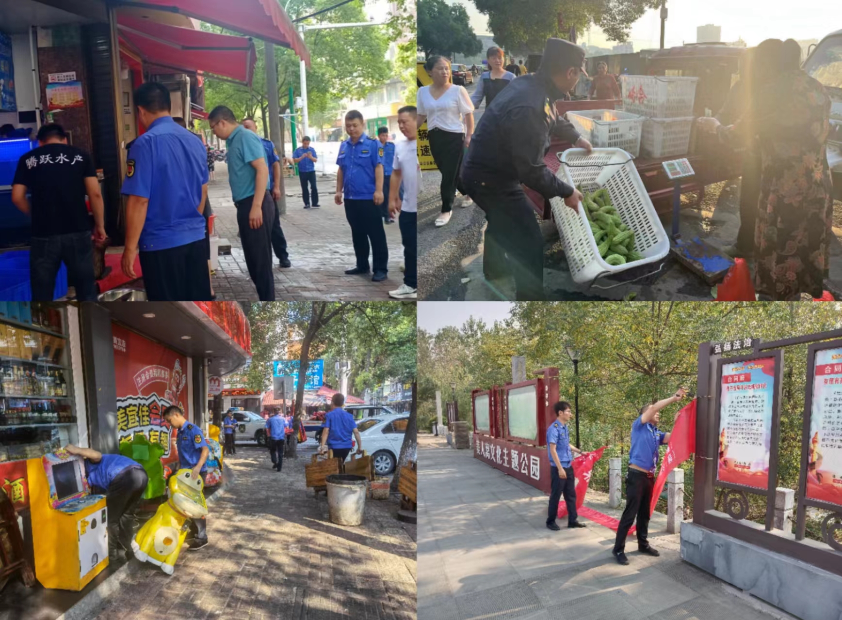 精心组织,开展市容秩序大整治。每日早中晚巡查城区主次道路,对重点区域和问题高发区域采取错时执法、延时执法和定人定岗值守等措施,对流动摊点、占道经营、店外经营等进行清理和规范,对乱堆乱放、乱停乱靠、乱泼乱倒等行为进行劝导和查处。同时,保持城管热线24小时畅通,确保城区秩序管控到位,及时有效解决各类问题。