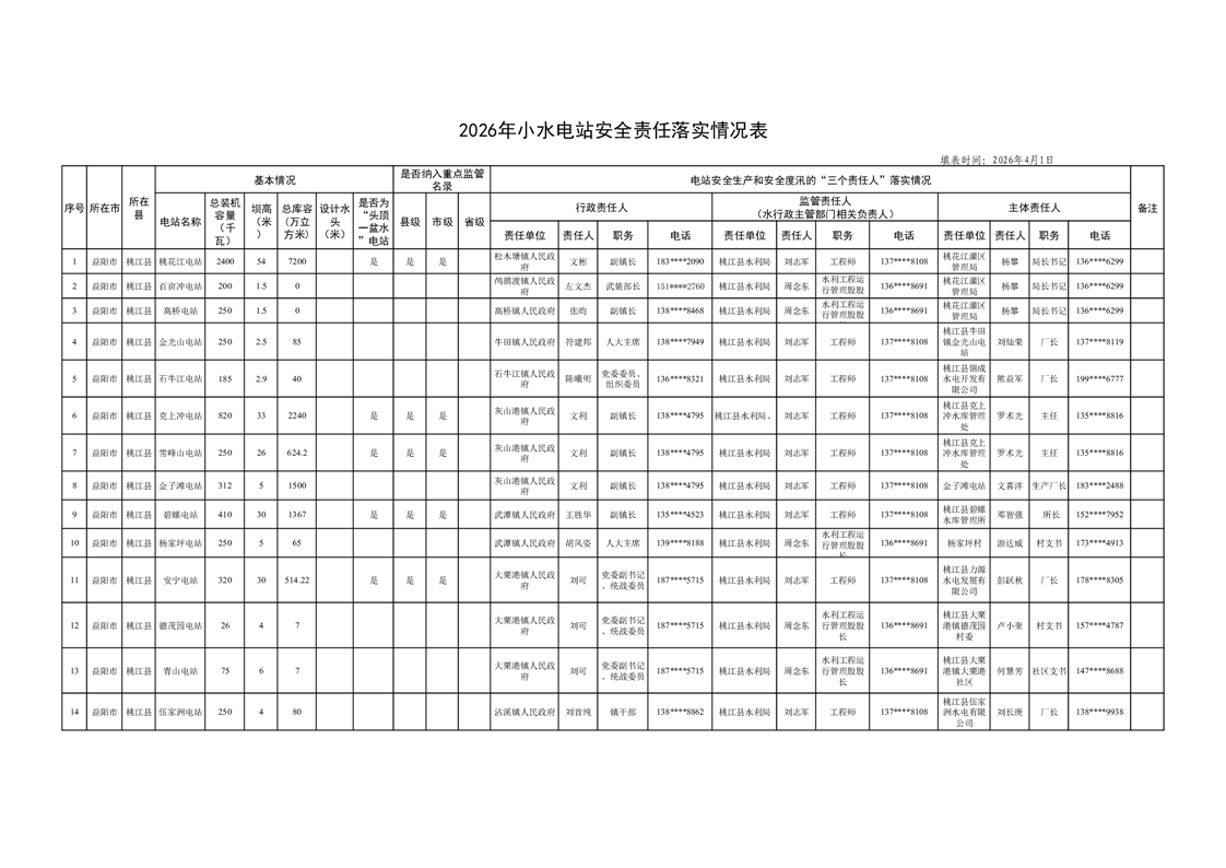 2026年小水电站安全责任落实情况表