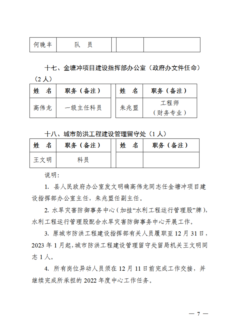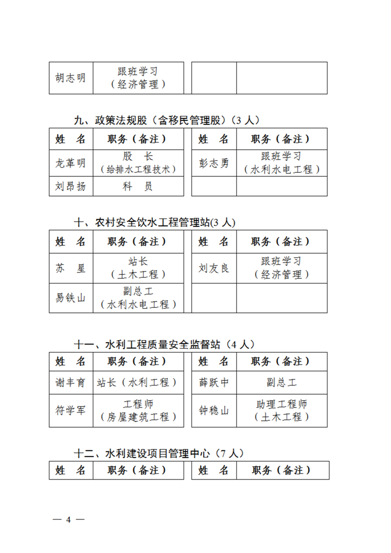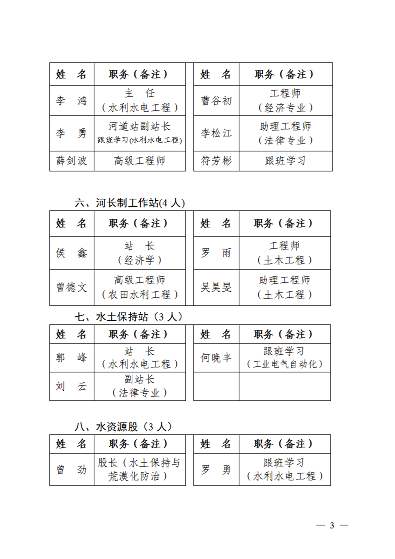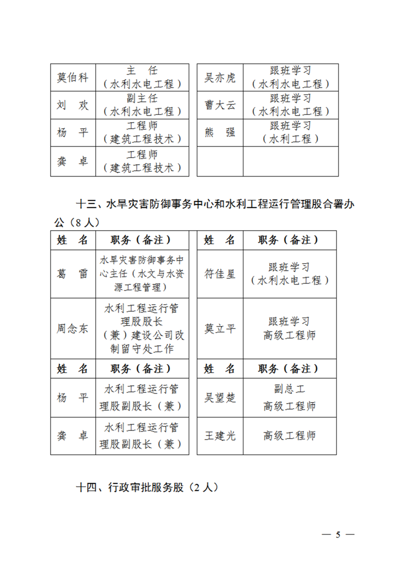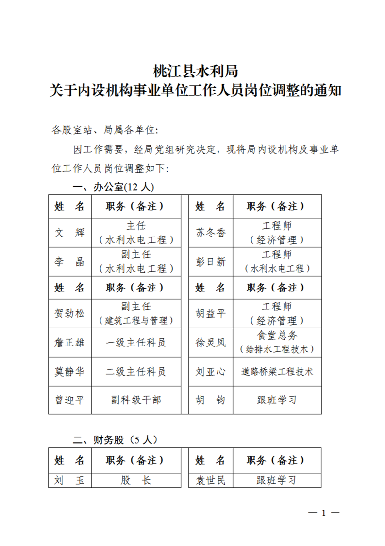 桃江县水利局关于内设机构事业单位工作人员岗位调整的通知