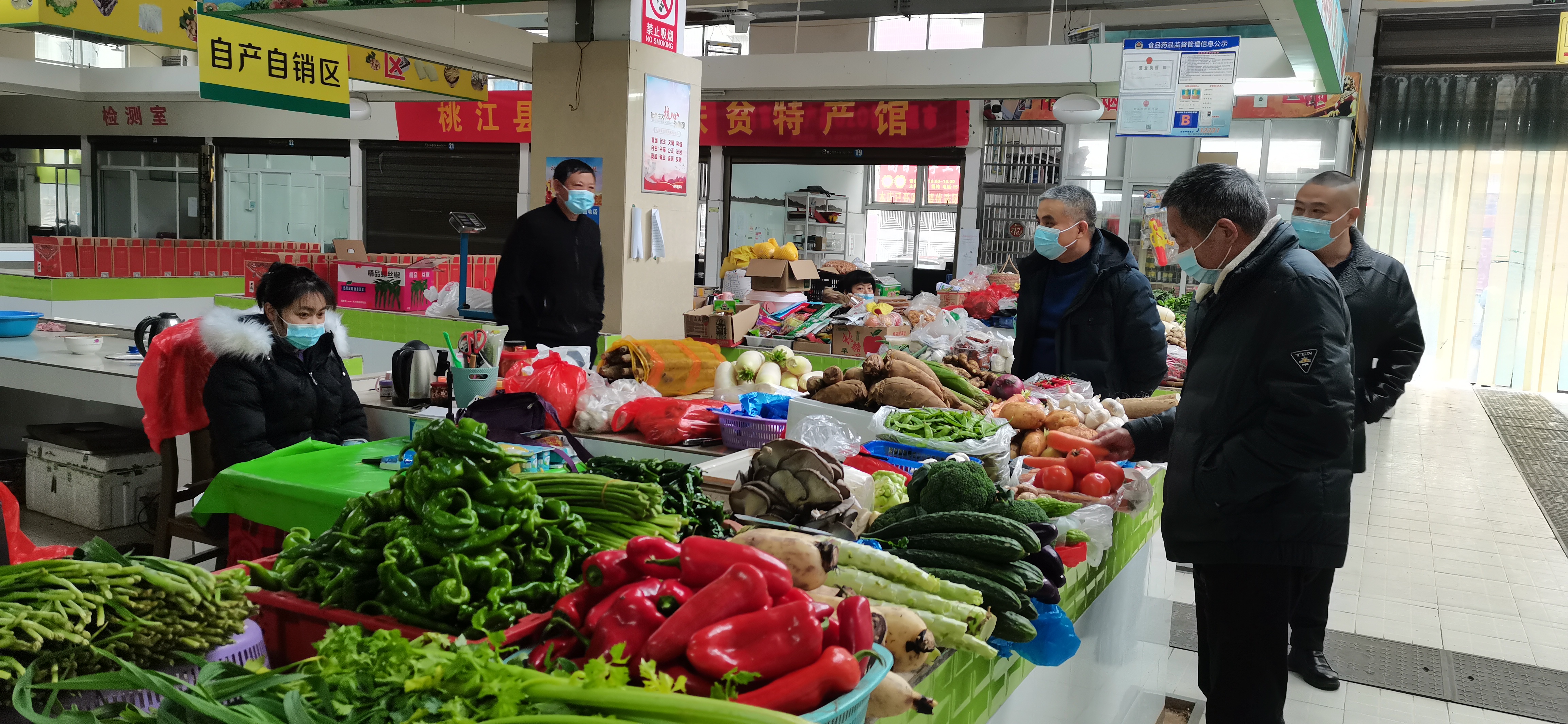 图为督查桃花南路农贸市场疫情防控工作
