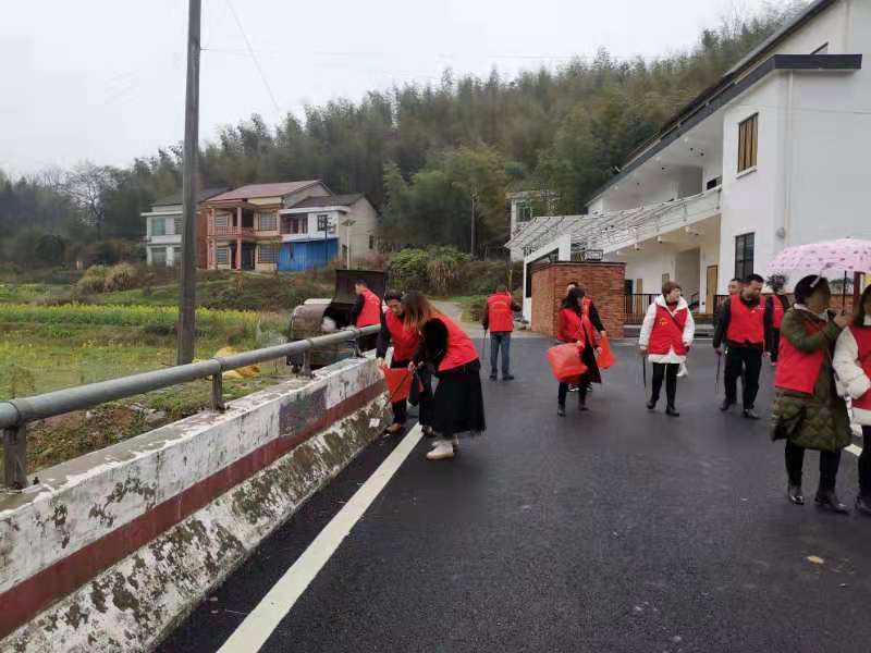 志愿者们冒雨来到了桃花江镇大华村,身穿红马甲、手拿塑料袋、铁火钳、扫帚立即开始捡拾垃圾、帮村民栽花栽树、宣传“垃圾分类”、倡导绿色低碳生活方式,为大华村的美丽乡村建设添砖加瓦,志愿者的一举一动赢得了不少路过村民的拍手点赞。