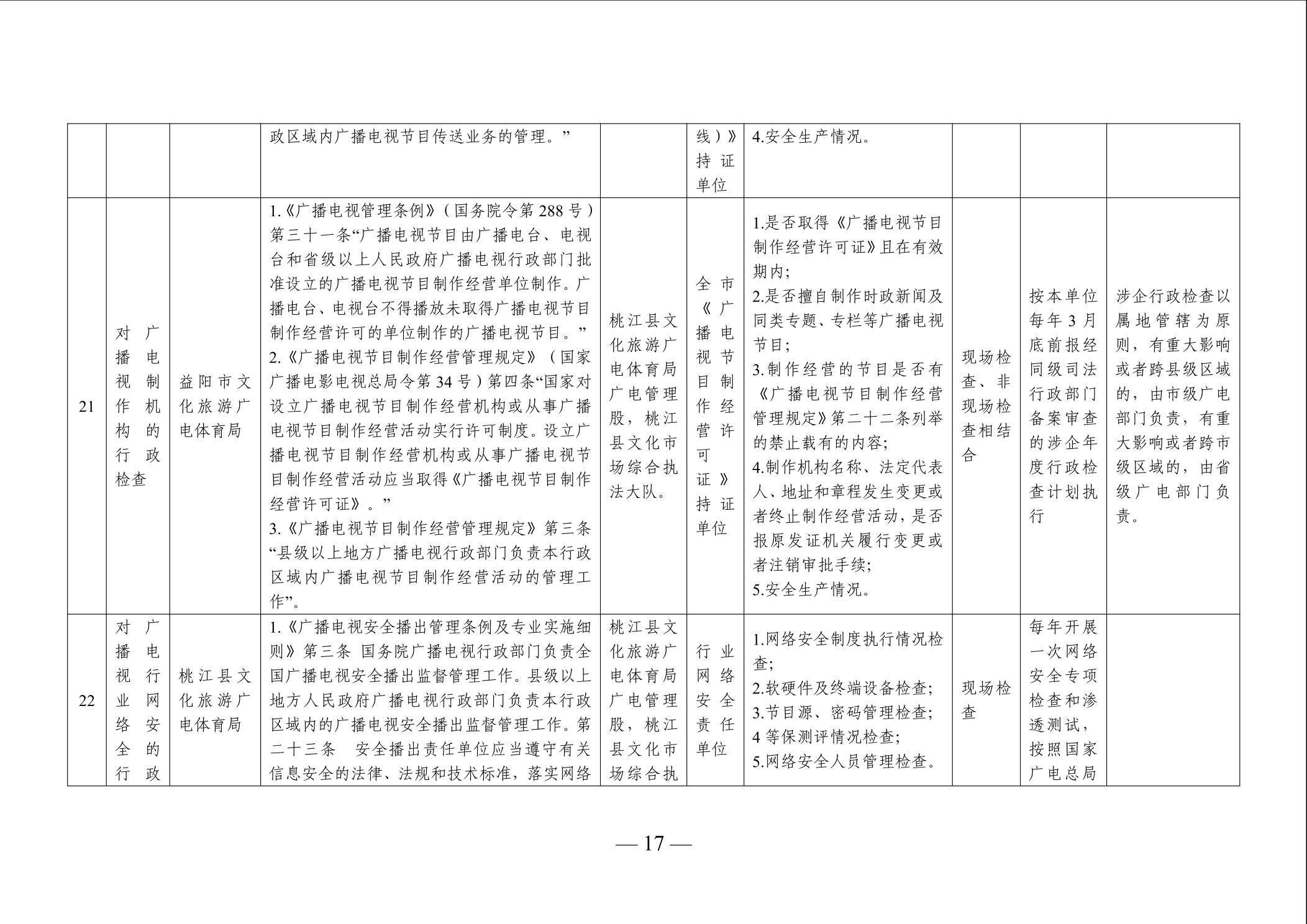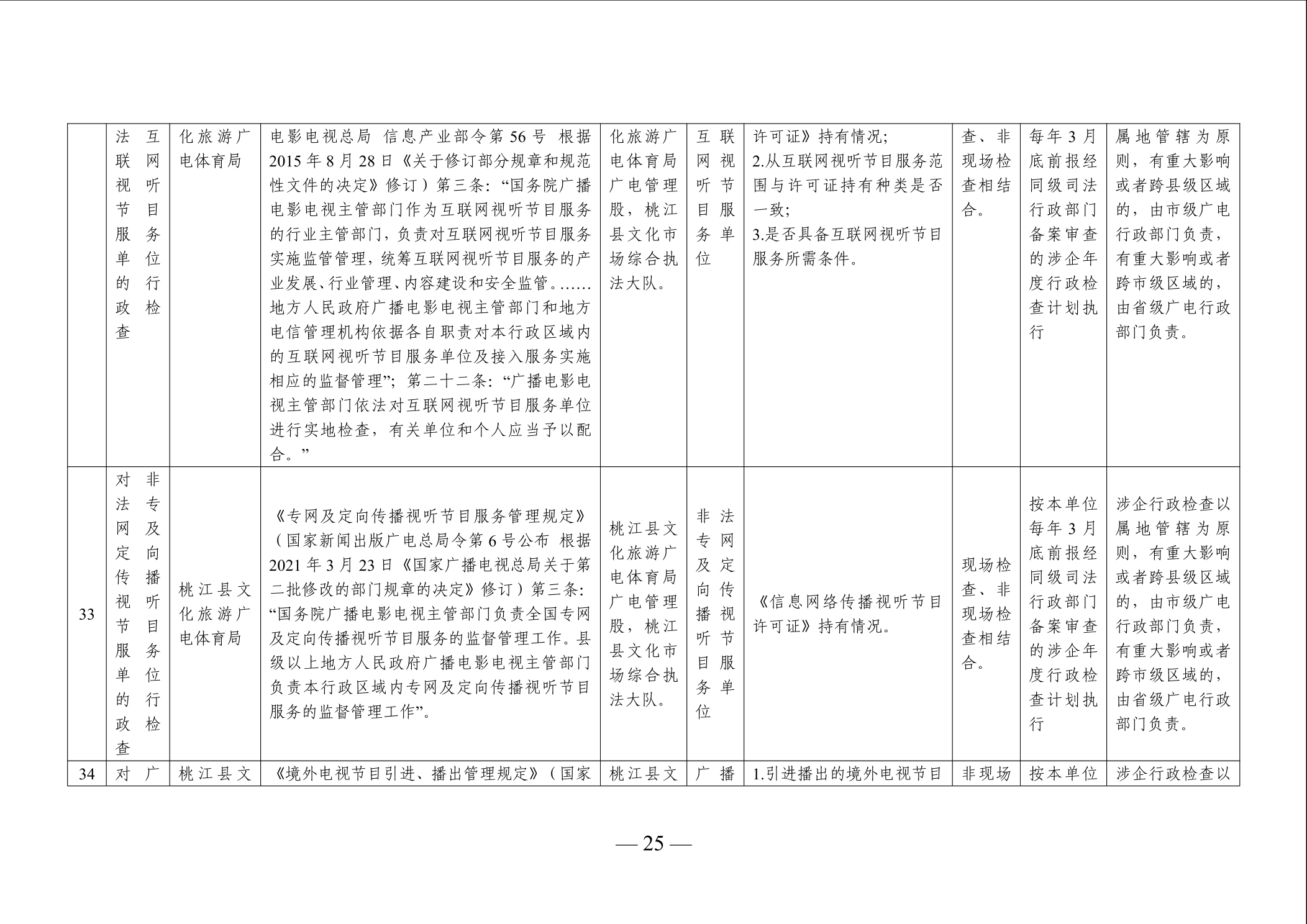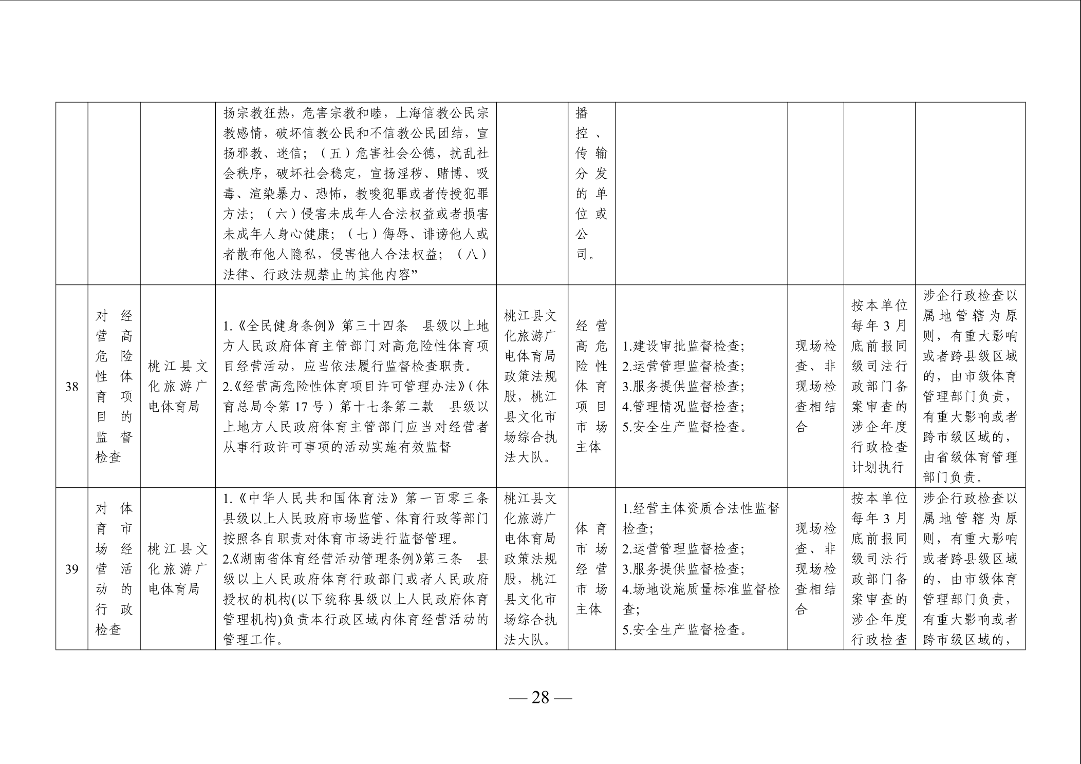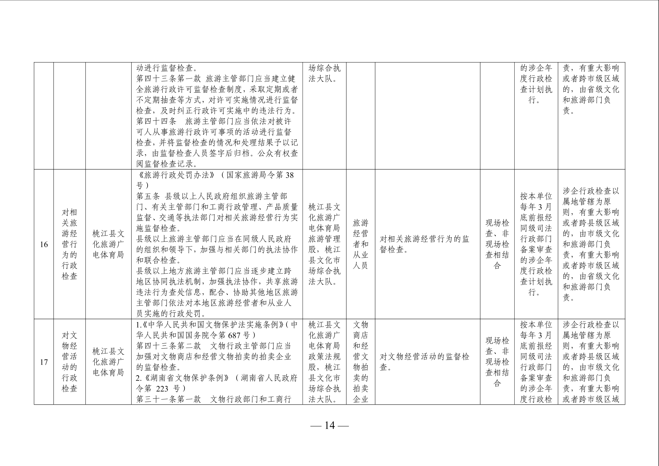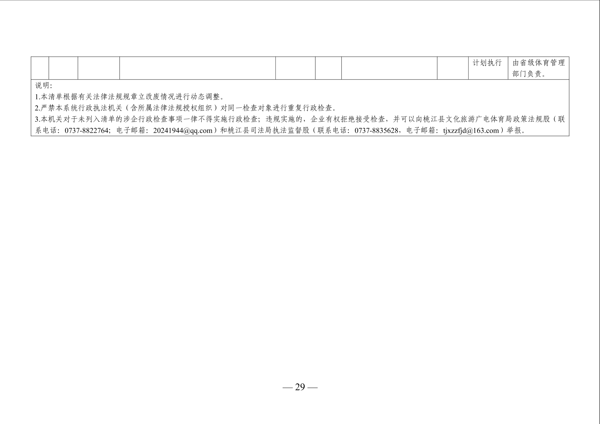 桃江县文化旅游广电体育局涉企行政检查事项清单