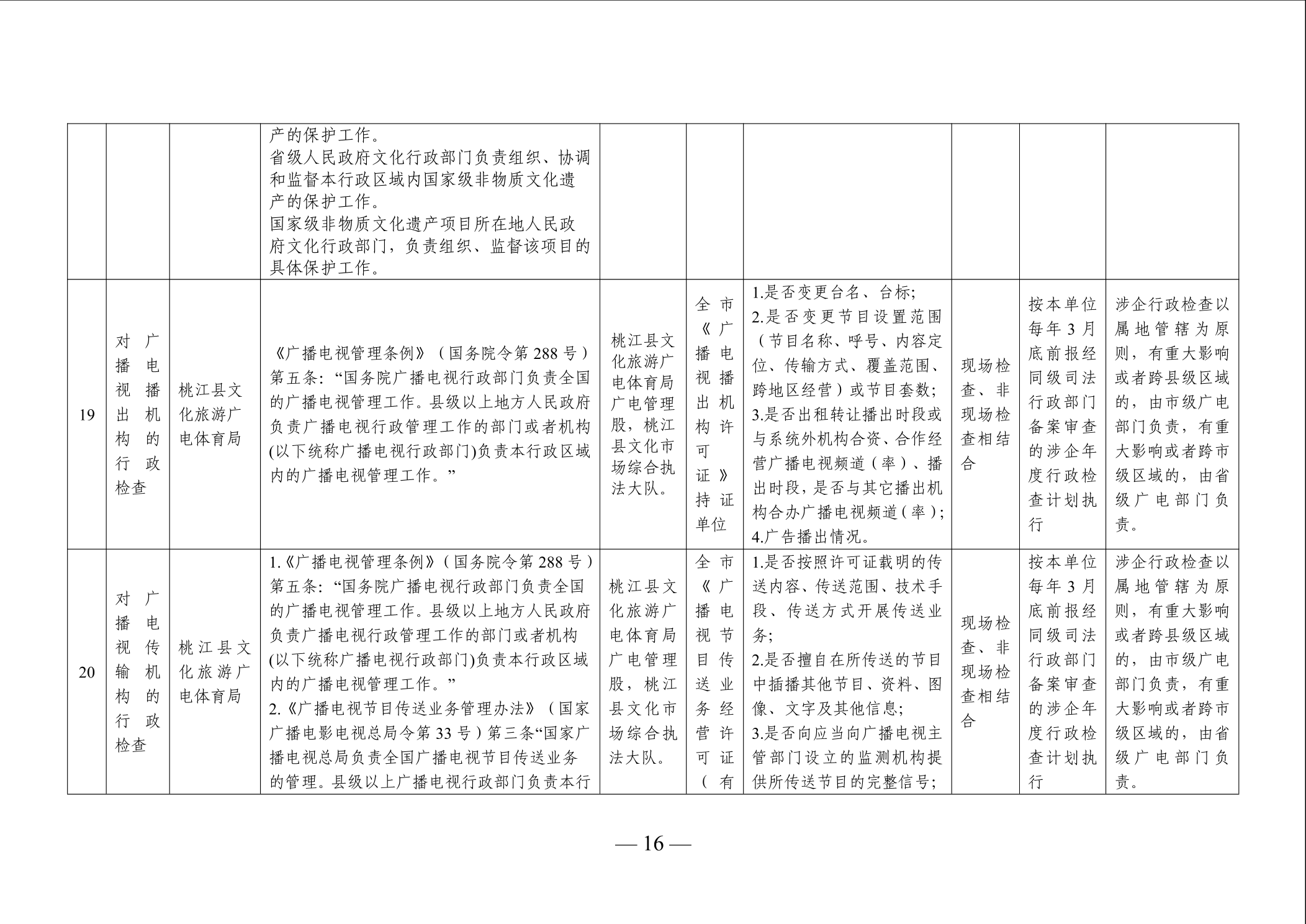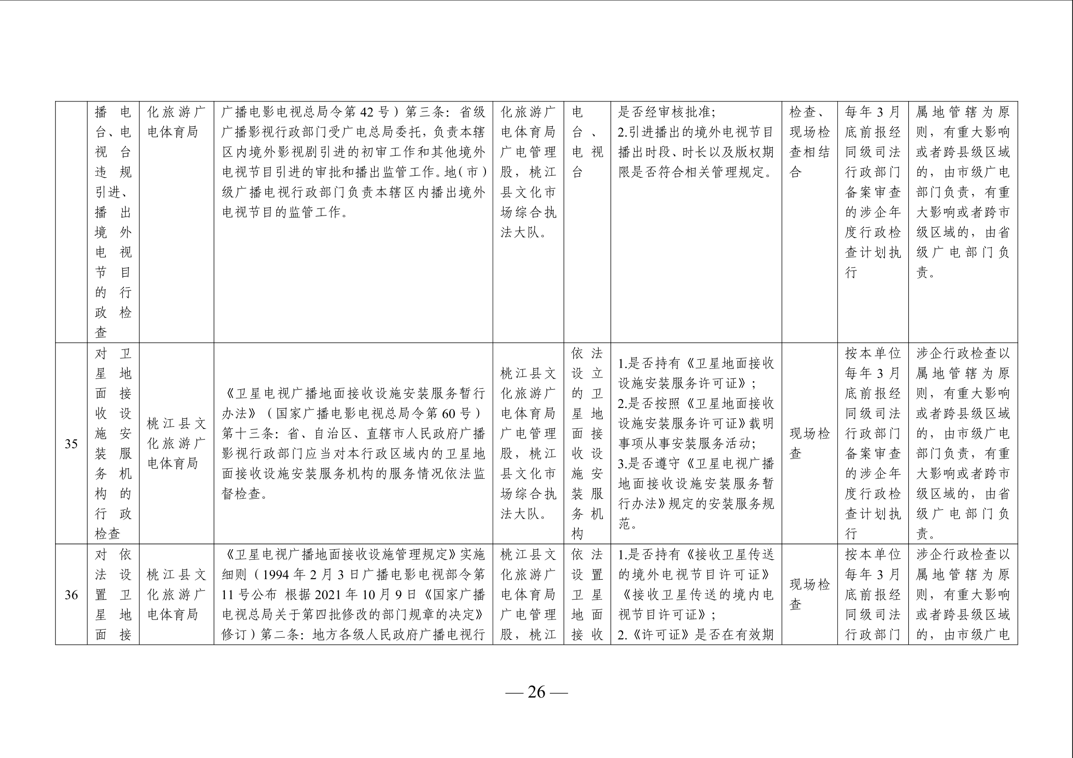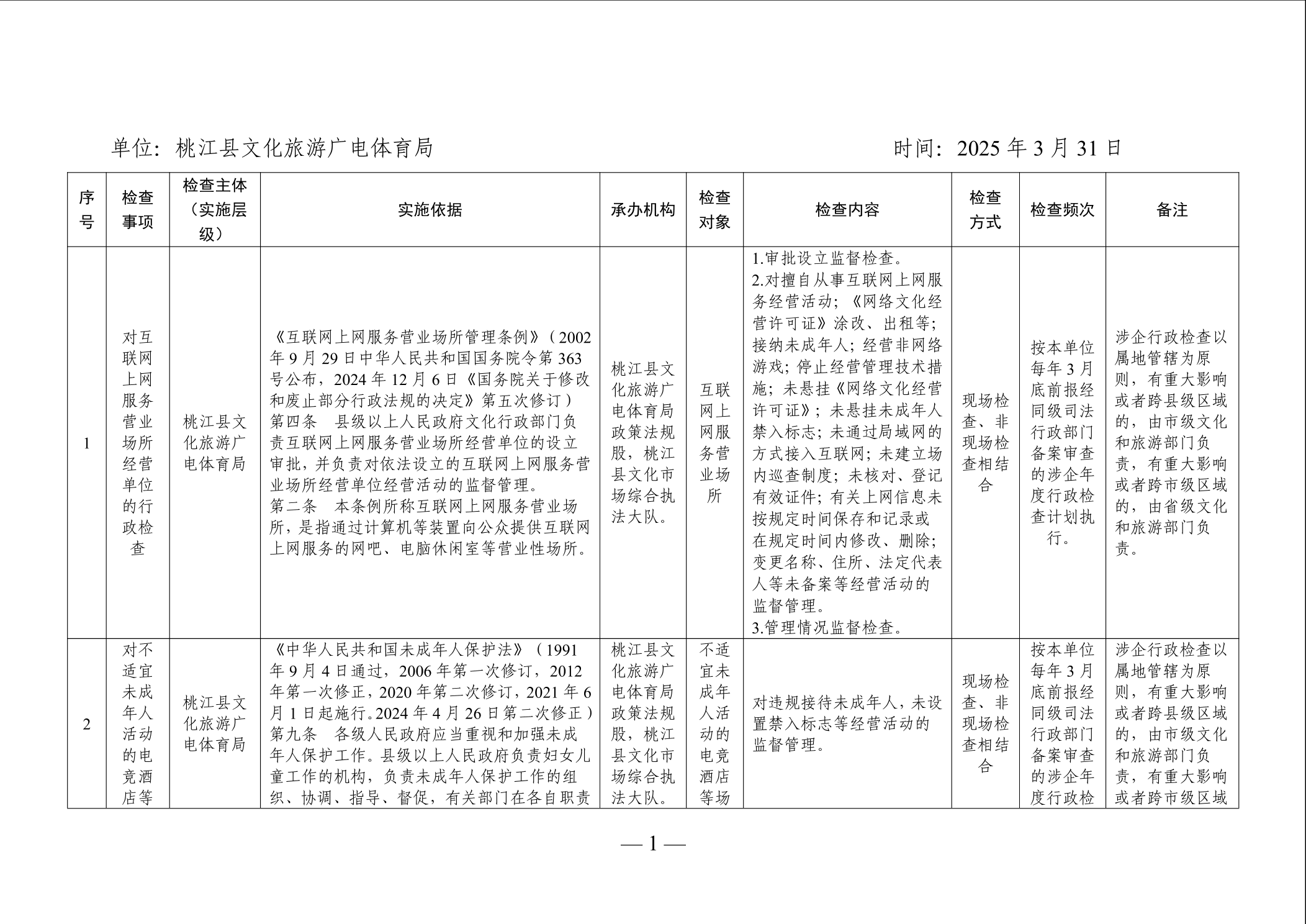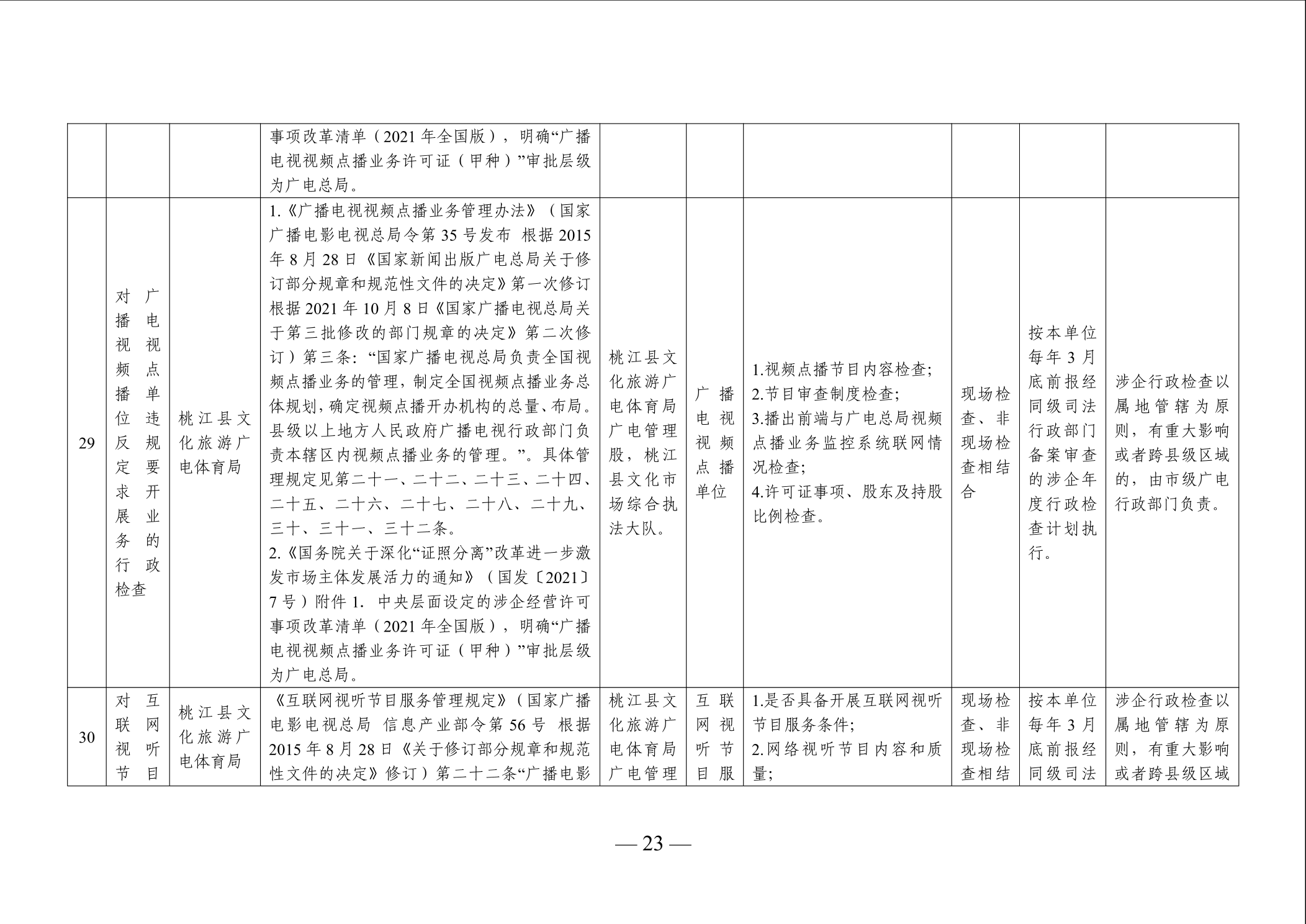 桃江县文化旅游广电体育局涉企行政检查事项清单