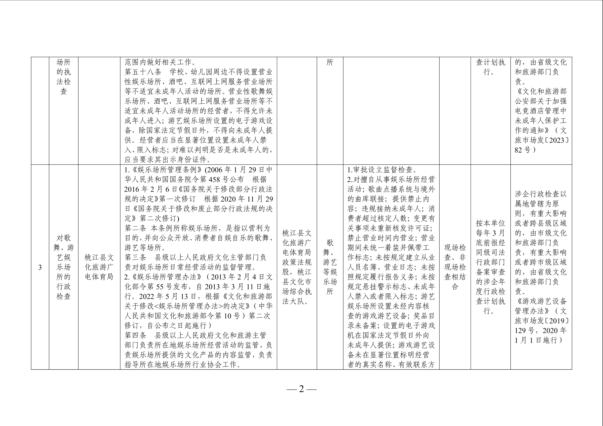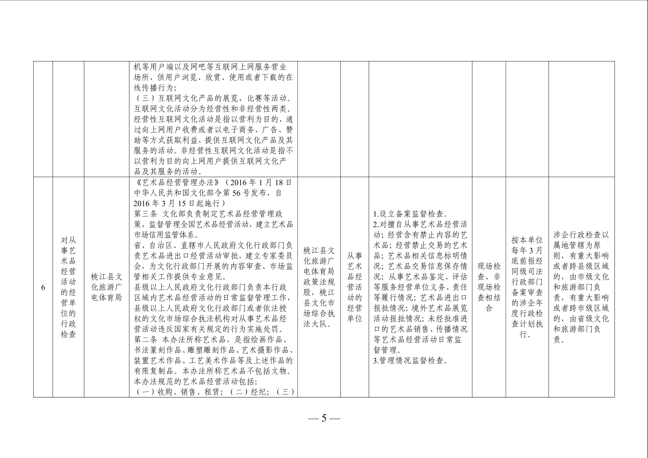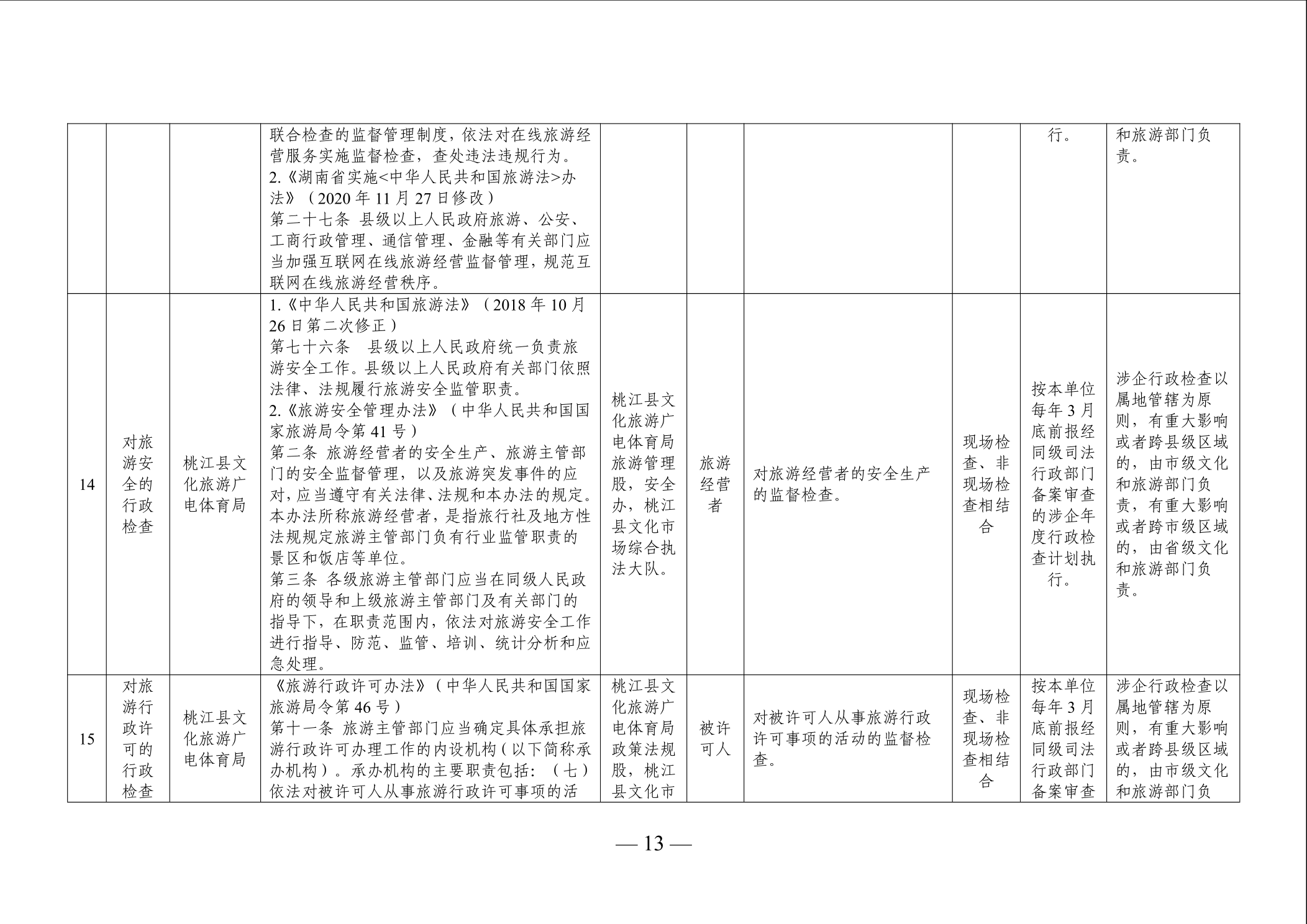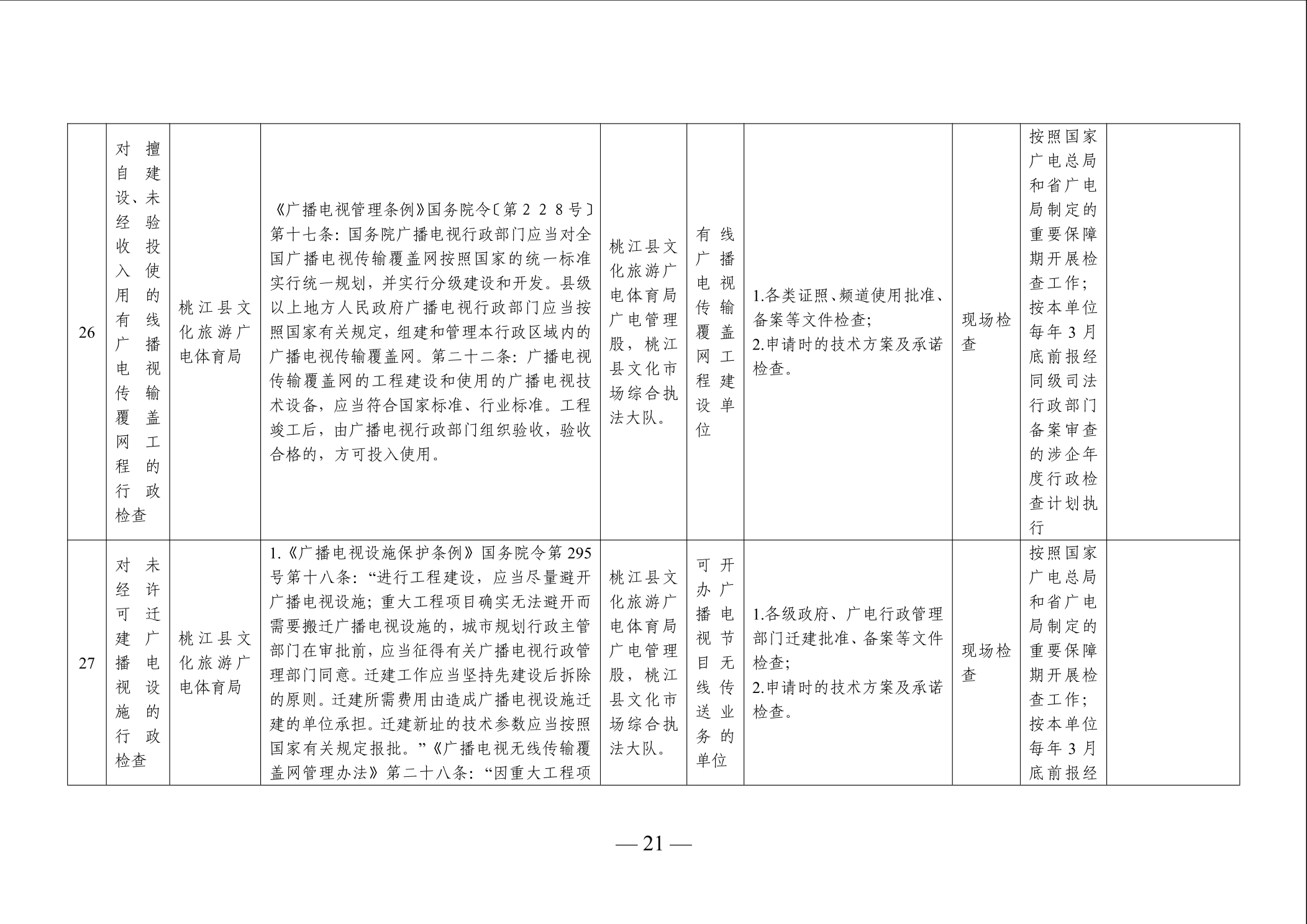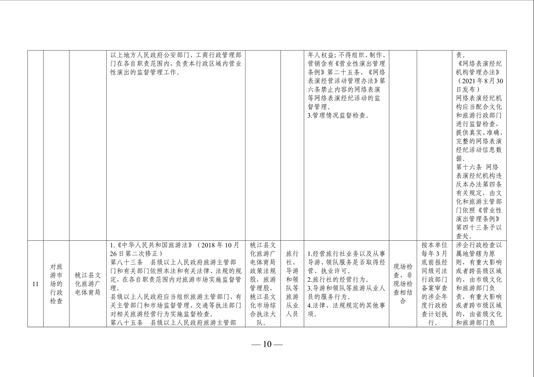 桃江县文化旅游广电体育局涉企行政检查事项清单