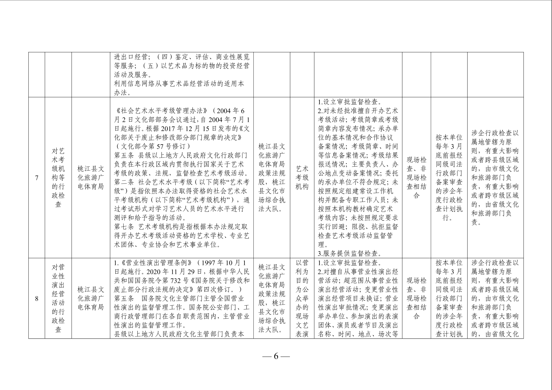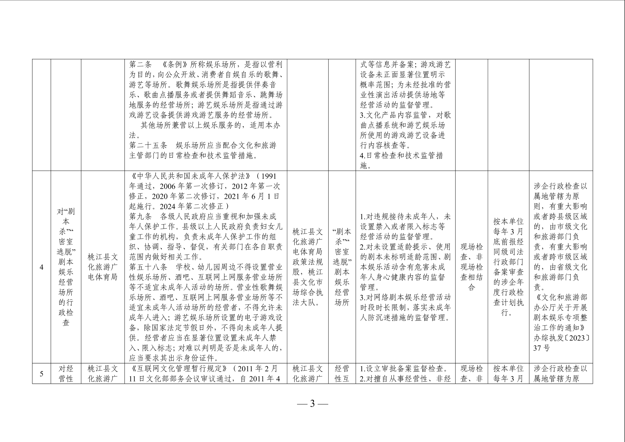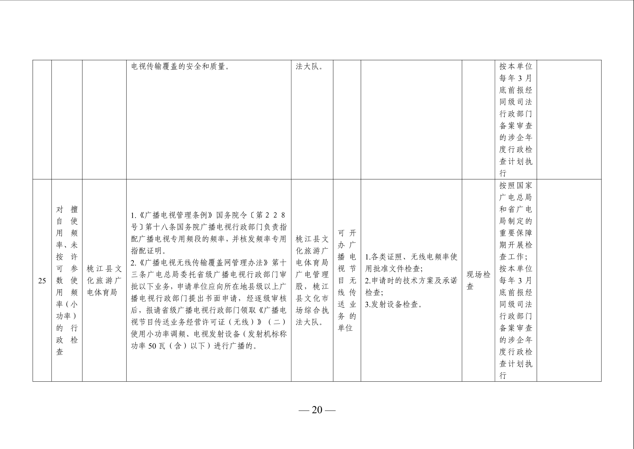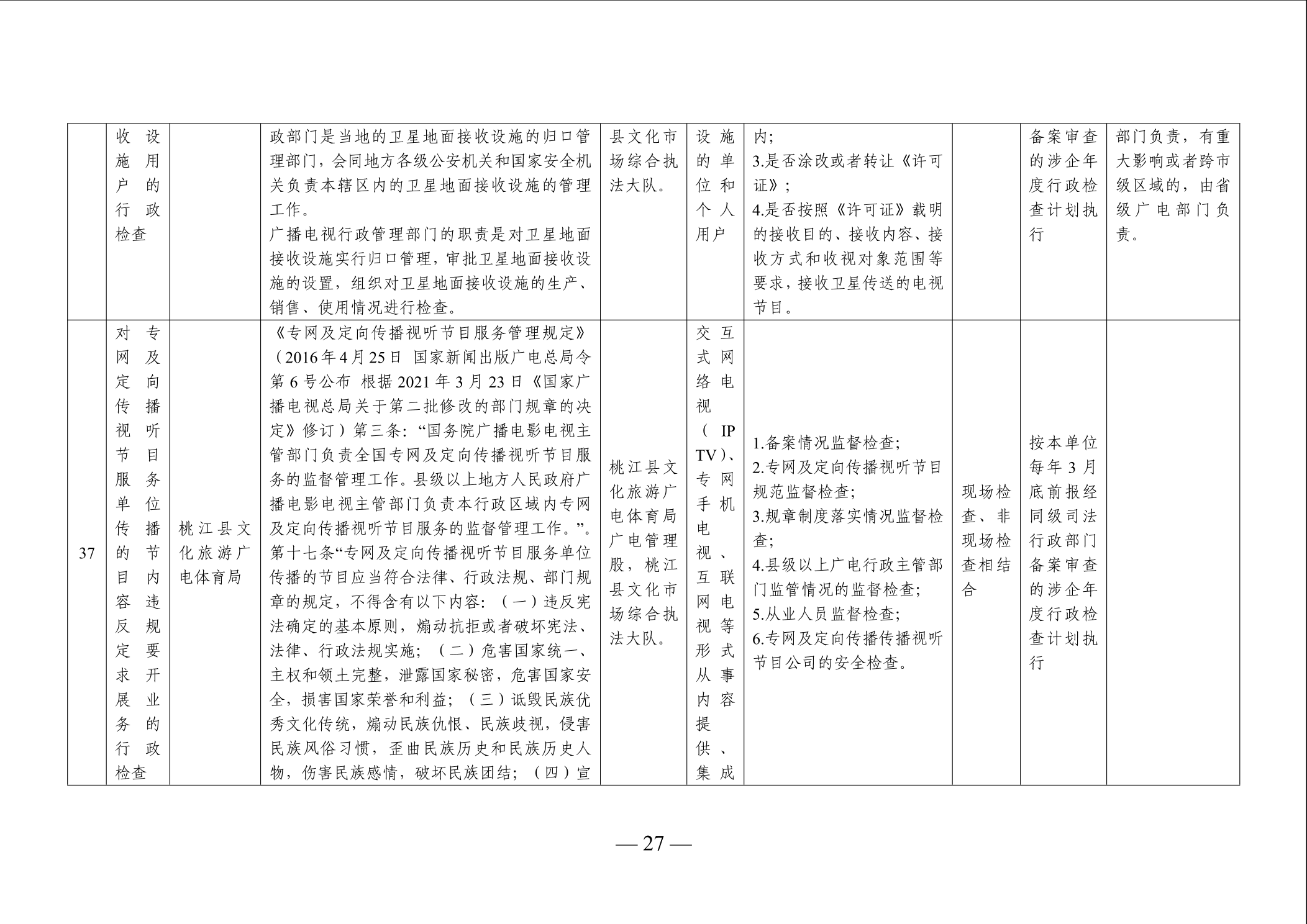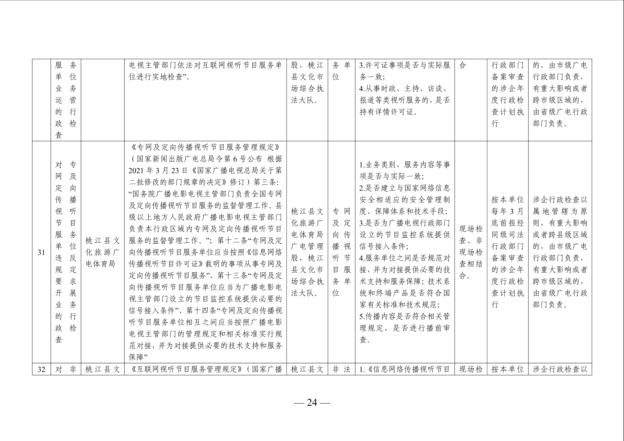 桃江县文化旅游广电体育局涉企行政检查事项清单