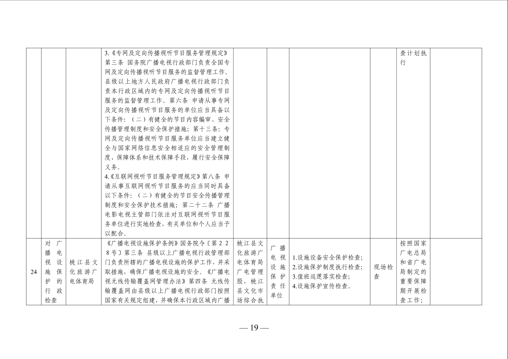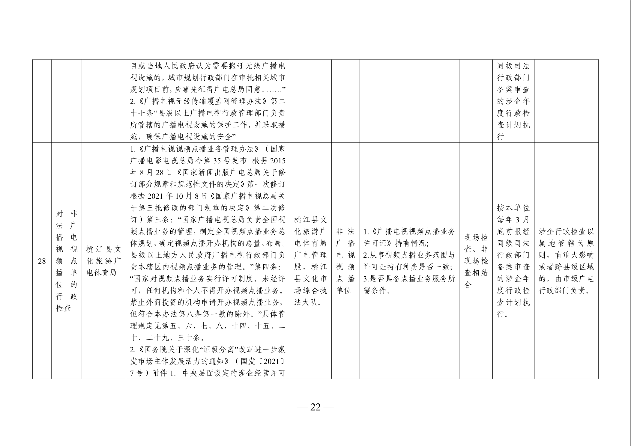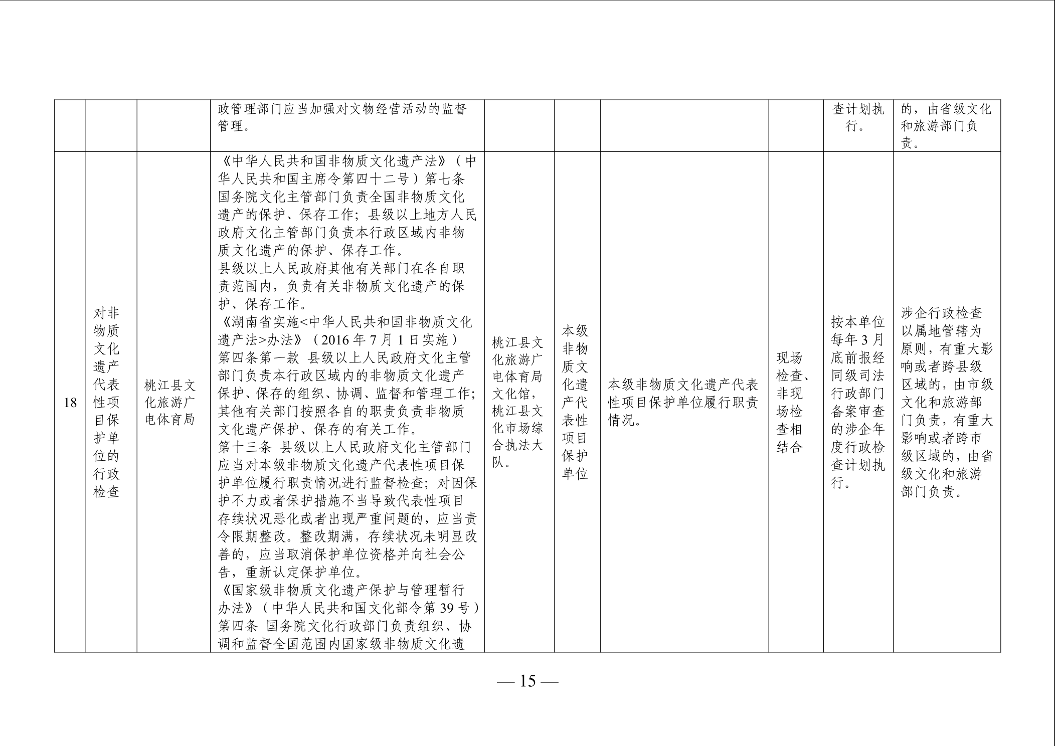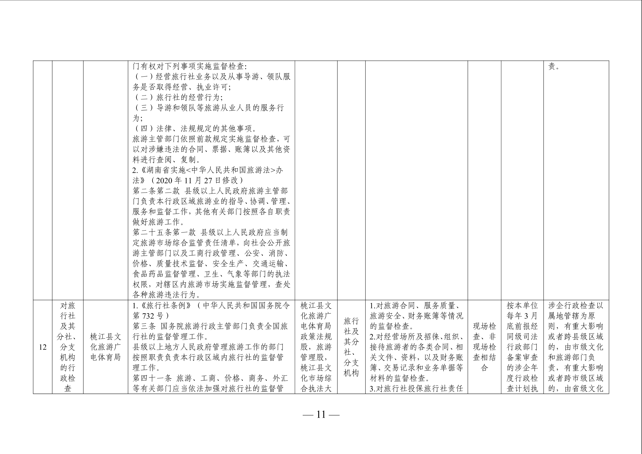 桃江县文化旅游广电体育局涉企行政检查事项清单