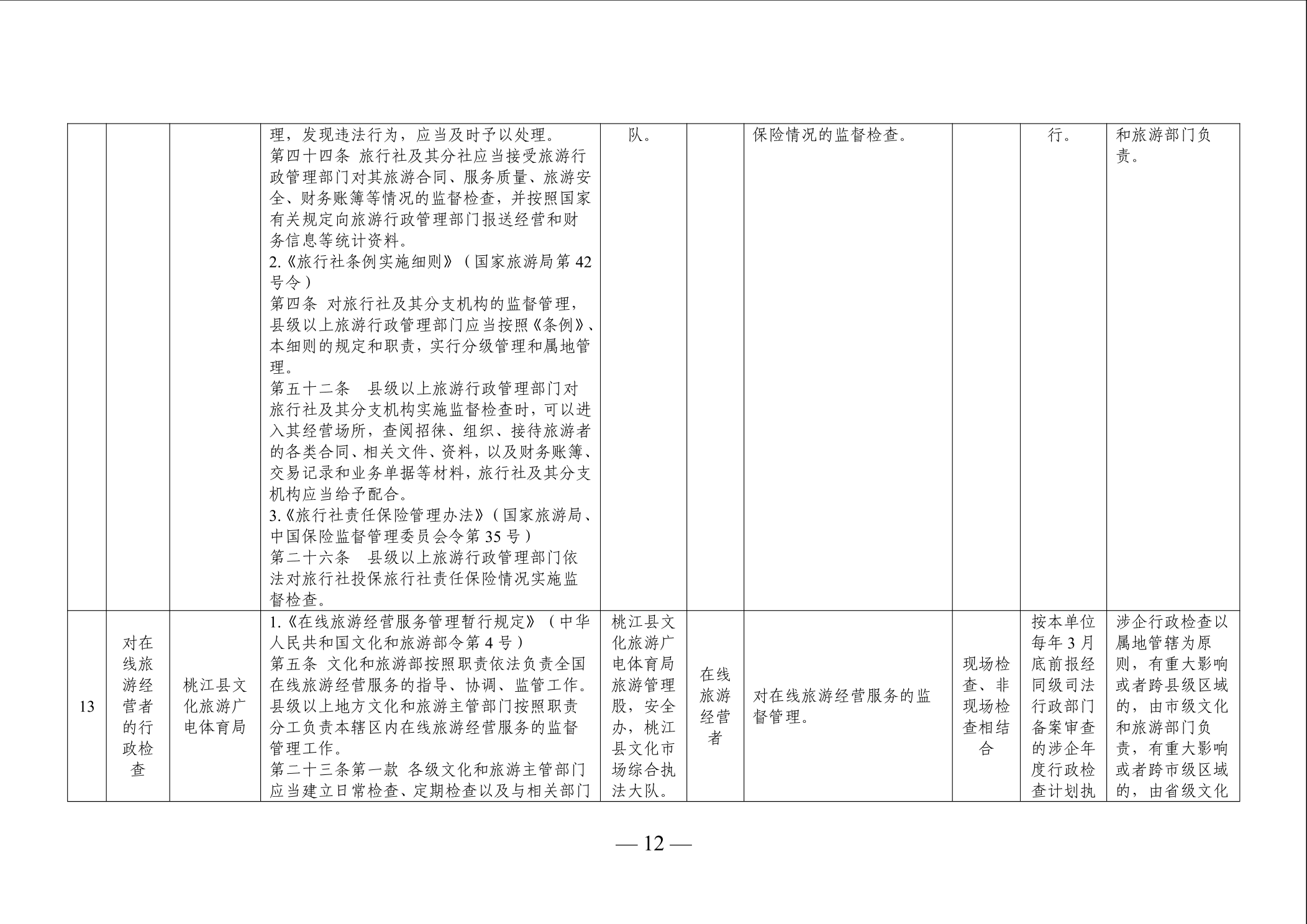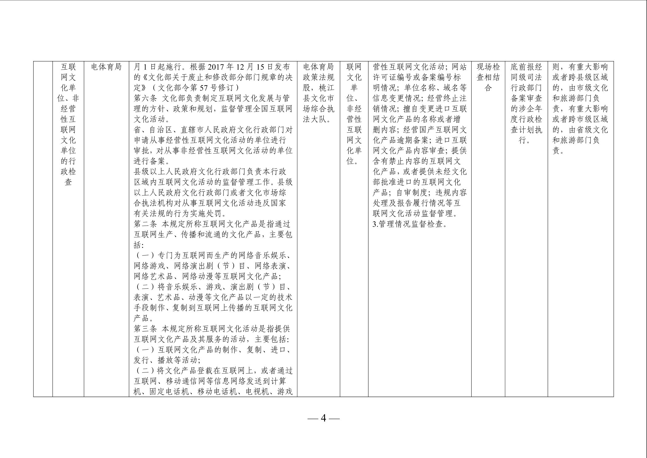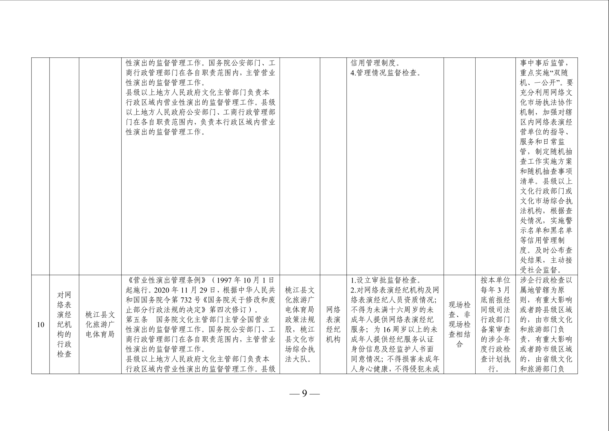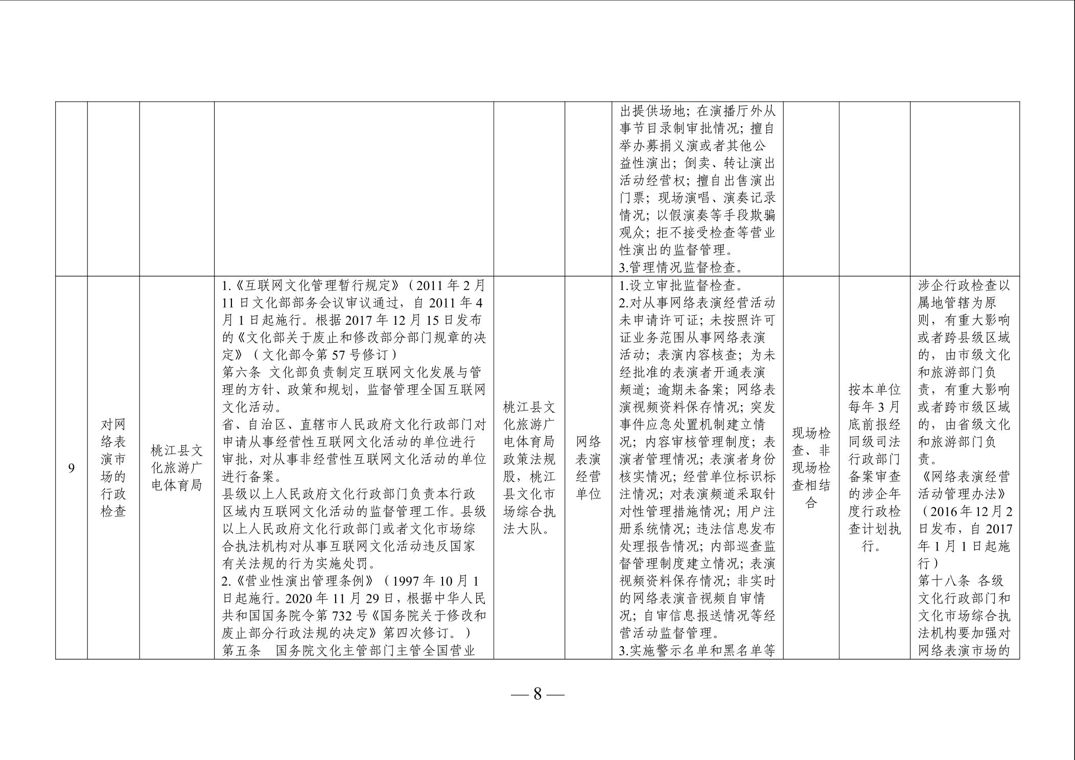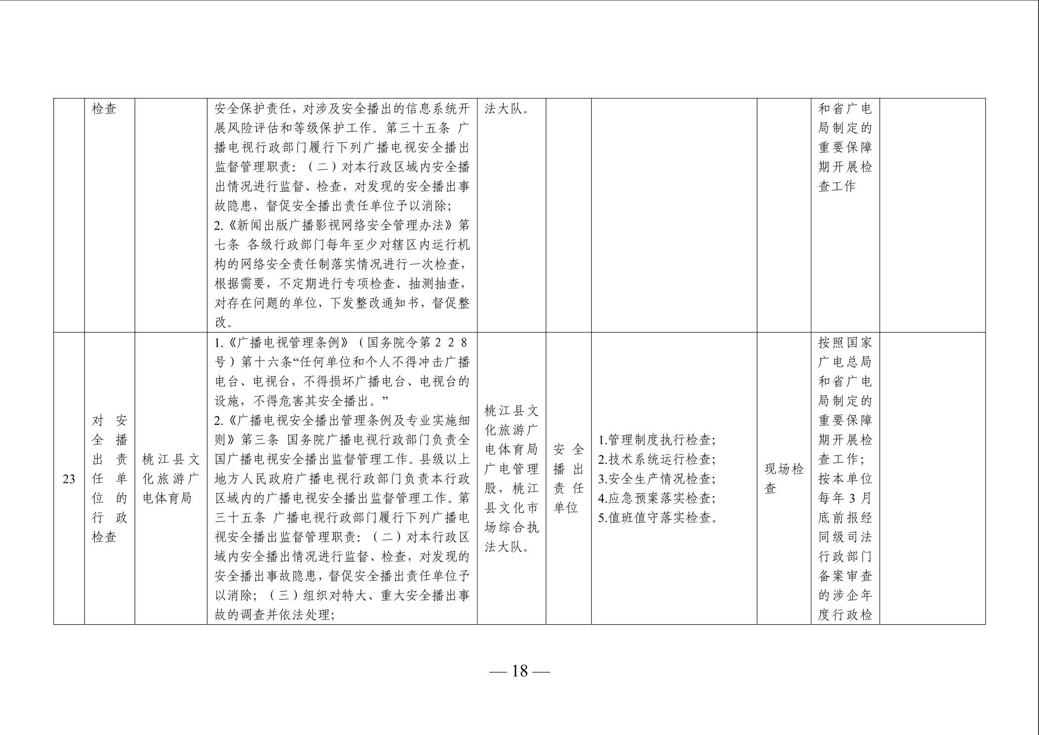 桃江县文化旅游广电体育局涉企行政检查事项清单