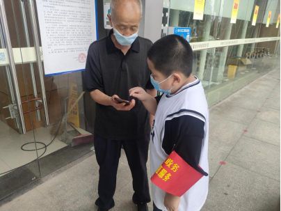 “爷爷,看下您的健康码。”8月16日上午,桃江县政务中心大厅外一名佩戴志愿者袖章的小男孩正检查进入政务大厅群众的“三码”。