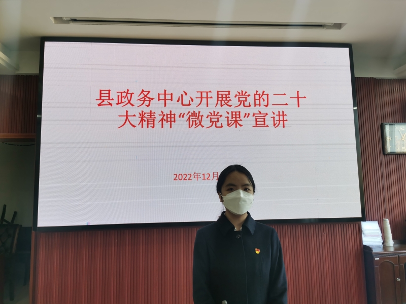 12月19日,县政务服务中心开展党的二十大精神“微党课”宣讲活动,在机关迅速掀起了学习党的二十大精神热潮。机关党员纷纷结合自身工作实际,以“微党课”形式谈对党的二十大感想。