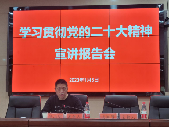会上,汪小明以严谨细致的阐释、深入浅出的解读、生动热烈的互动,从“三问三答”,明晰“为什么学”;“三学三思”,明白“学什么”;“三学三用”,明确“怎么干”等三个方面入手,对党的二十大精神进行了全面系统的宣讲。与会人员认真聆听并记录,深受启发。