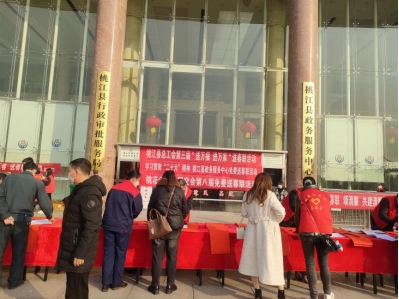 小年伊始,春节将至,为弘镏谢判愦澄幕�桃江县政务服务中心携手桃花江文化研究会在政务大厅前坪开展“学习贯彻‘二十大精神’免费送春联”志愿服务活动,为群众献上美好祝福。