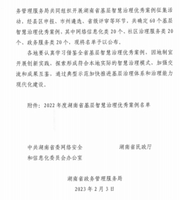 2022年度湖南省基层智慧治理优秀案例通知截图