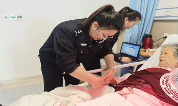 工作人员在病房内为患者采集指纹 石俊摄