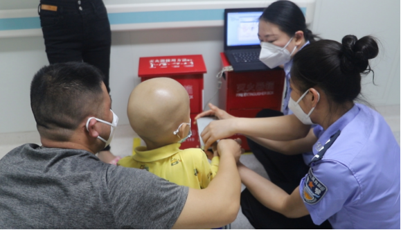 “警察叔叔来给你拍照了嘞,儿子,我们拍张帅帅的照片。”5月7日,桃江县人口与出入境管理大队3名民警驱车从桃江前往长沙,往返200公里,快速地为一名患有白血病、行动不便的4岁小男孩,完成身份证信息的采录。