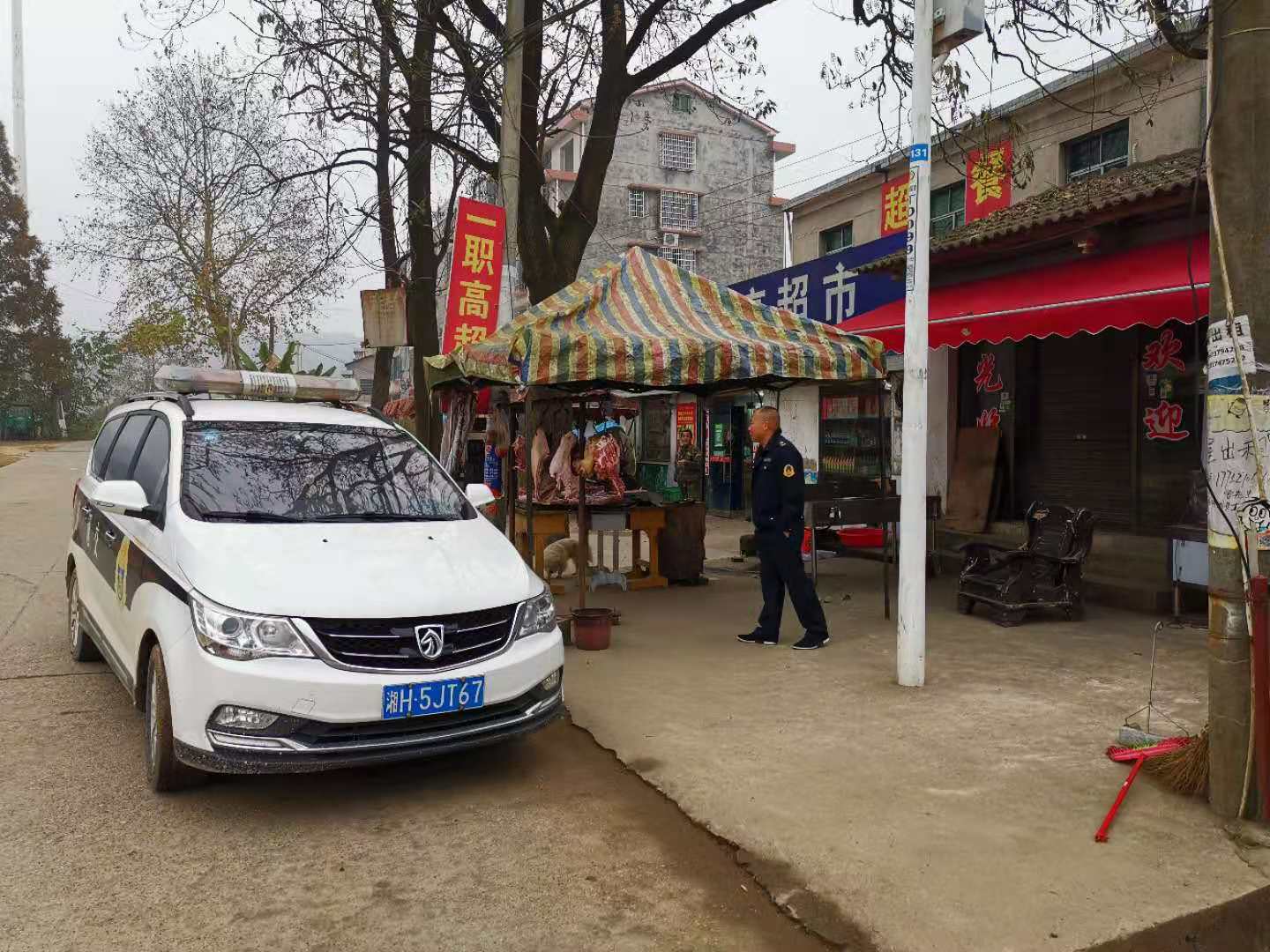 “别人都知道摆进去,怎么就你喊不应!”在桃江职业中专附近的省道旁,一处贩肉摊引起了队员们的注意,虽然摊铺没摆上路面只是贴着路沿,但买肉的人却只能站在路面上,车来车往的很不安全,也影响正常通行。执法人员责令摊主立即将摊铺撤到离路面2米以外,并告知摊主不要抱有侥幸心理,执法队将不定时过来复查,确保整治到位。每到一处路段,执法队除检查整治外还会向广大村民讲解安全行车常识,并充分利用手机微信、村村通广播等媒介,持续播出、发送交通安全提示、交通事故自救与互救常识等内容,确保群众“知危险会避险、安全文明出行”。