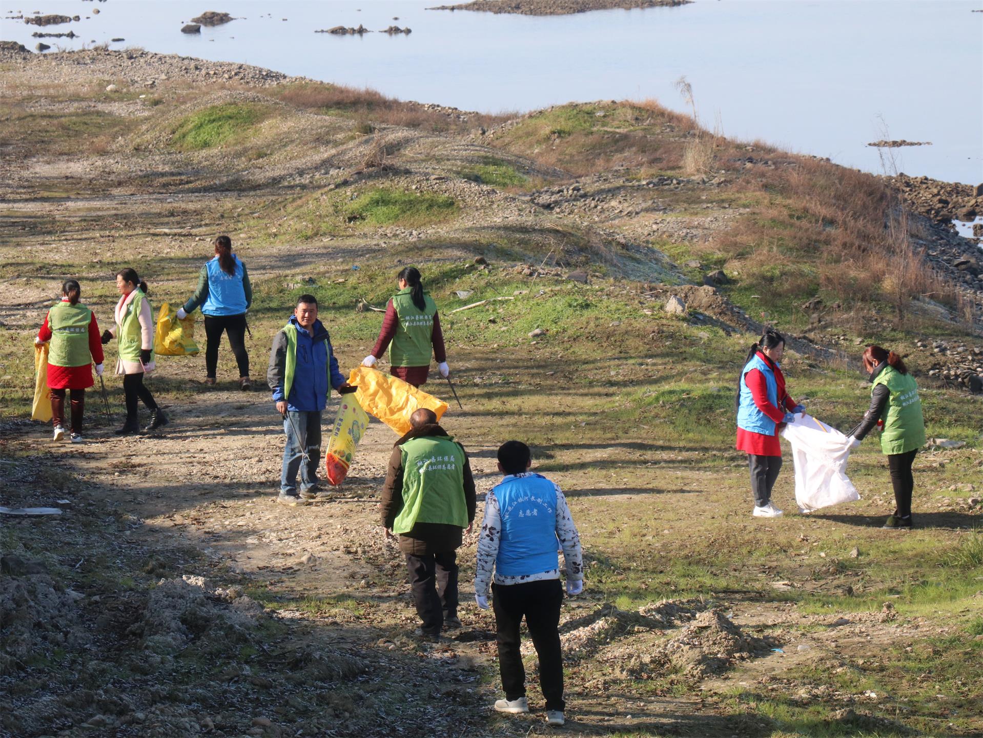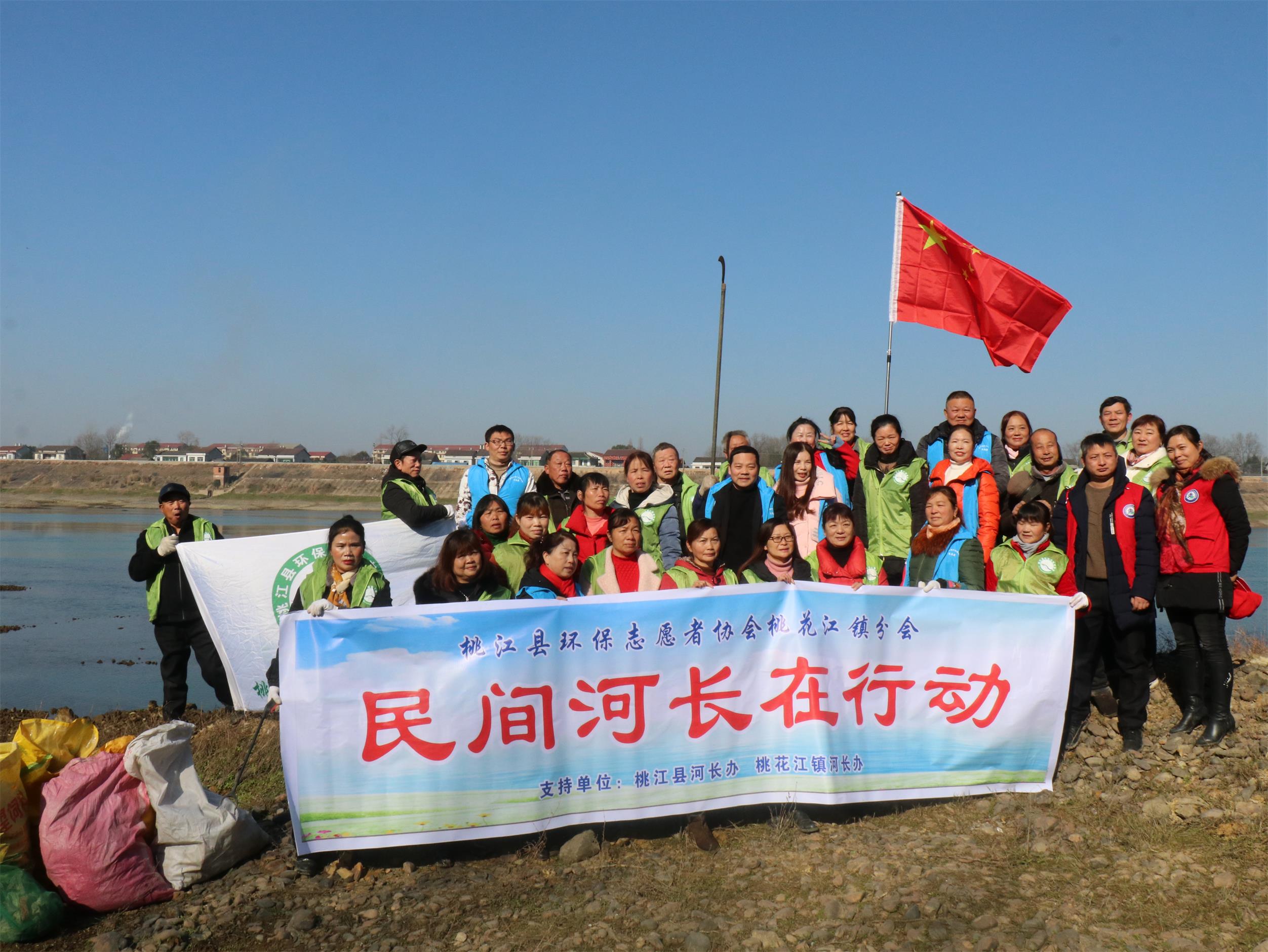 1月12日上午,冬日暖阳下的资水岸边热闹不已,桃江县桃花江镇河长办联合镇环保志愿者协会,组织近百名志愿者在资江和獭溪河开展护河行动。