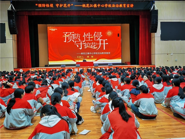 4月10日下午,桃花江镇联合桃江县人民检察院走进桃花江镇中心学校,为全校2000余名女生送上一堂生动的法治课。