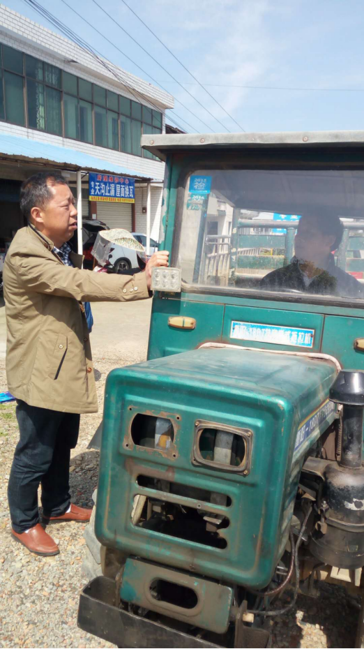 4月14日,浮邱山乡分管安全生产班子成员肖灿文带队联合乡农机站、交管所对辖区内所有农用拖拉机进行一次隐患排查与摸底,分门别类的对排除出的问题进行有效治理。