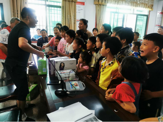 给孩子们发放文具用品