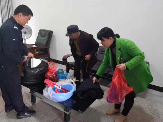 图为回龙湾村干部蒋丽、辅警曾庆为蒋文胜准备的生活用品