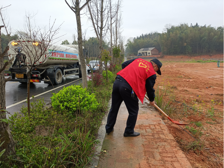 人居环境分管领导带头清扫道路
