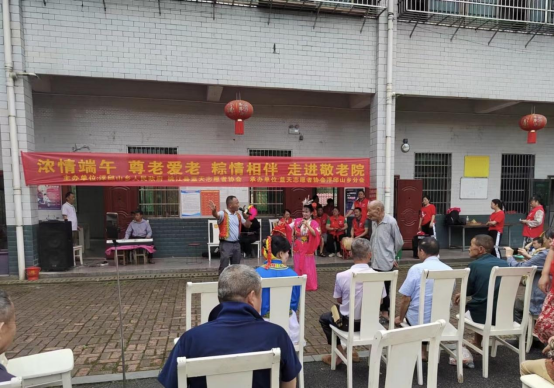 走访慰问,浓情端午。乡社会事务办联合蓝天志愿者协会到敬老院开展慰问活动,为老人们送去了80份爱心粽子和精彩的表演。志愿者们精心准备了花鼓戏、汉服舞、笛子独奏、大合唱等23个节目,现场气氛欢乐祥和,获得了老年朋友的阵阵掌声。表演结束后,大家围坐一起促膝长谈,了解老人们近期的生活状况和需求,并嘱咐其保重身体,保持乐观积极的心态。“今天像一场盛大的家庭聚会,我觉得很幸福!”敬老院的刘嗲笑呵呵地说道。志愿者们也为自己能在这个特殊的节日给老人们带去舒心和欢乐而感到幸福满满。