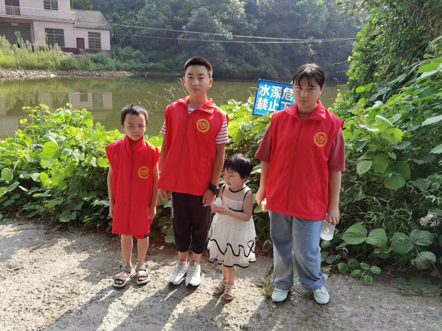 8月23日,高桥镇赵家山村干群在宣传防溺水工作时,有这样一支不同寻常的红马甲小分队。走近一看,是由四名小学生组成的小队,他们穿上红马甲,戴上红袖章,化身为“宣传志愿者”宣传防溺水工作。