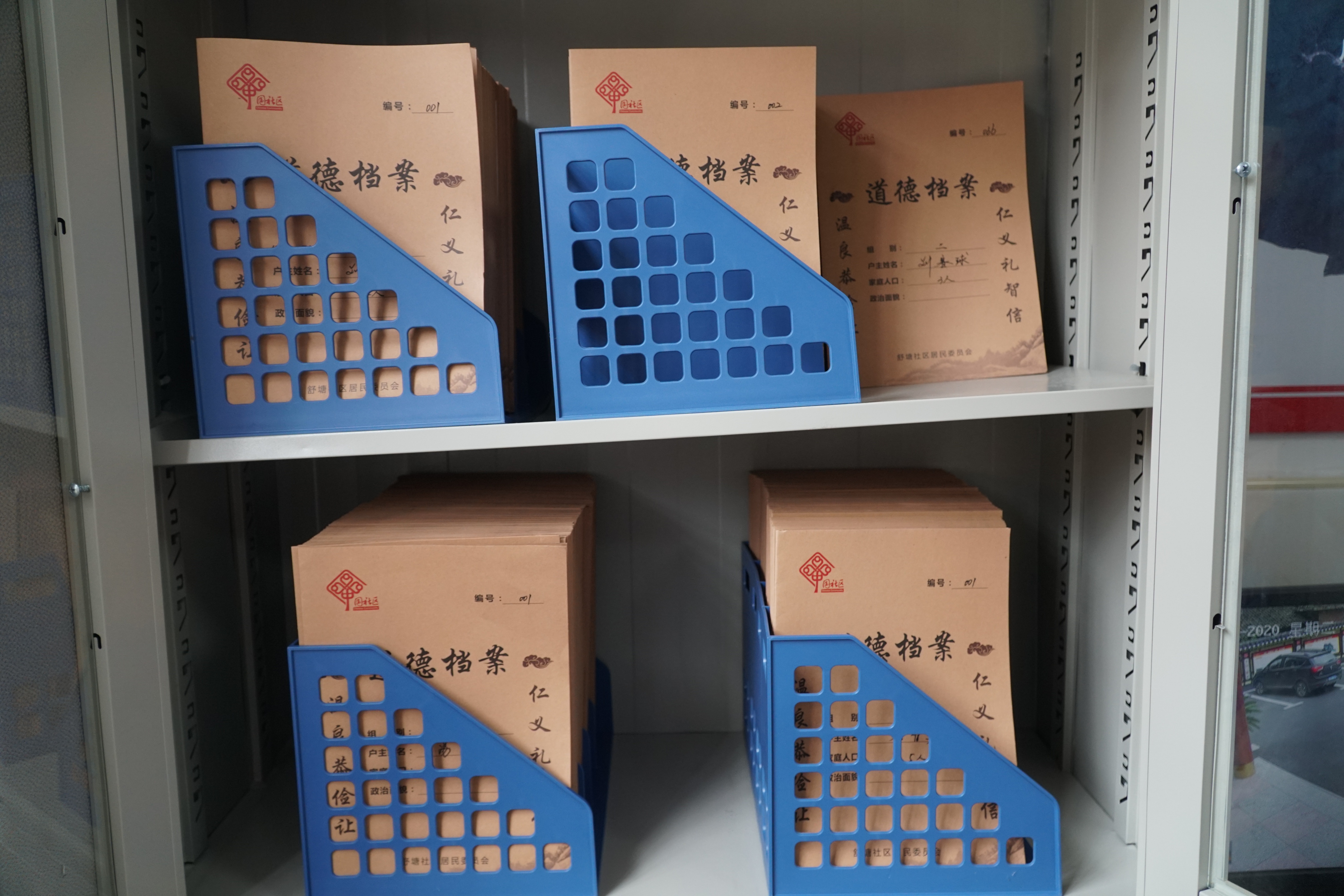 道德档案实行积分制,分为五个星级,每季度由居支两委、居民代表等成员组成的道德档案管理委员会进行评定。五星和四星的模范党员和优秀居民在光荣榜、网格微信群进行公示,并与每年的“最美家庭”等先进典型评选、社区福利等挂钩。如果居民存在违法犯罪等不良记录入档,除了通过广播、微信群等方式公开曝光,居民在社区的审批、福利待遇等都将受限。